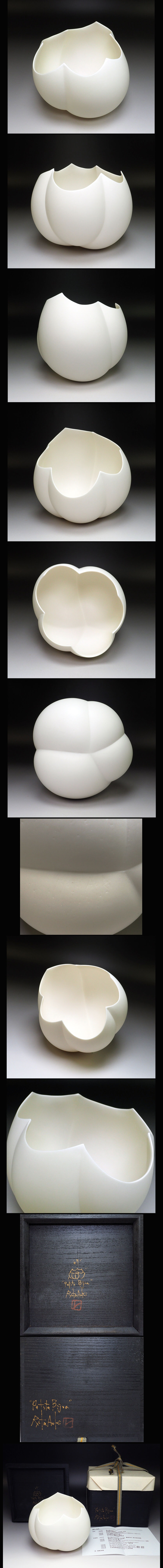 ![]() 青木良太のシャープさと柔らかさを融合した白い器「Petite Bijou」です。 サイズ:約 最大径 15.5cm 高 12.5cm 共箱・栞つき 作品状態:外傷キズは無く美品です。(目視確認です。) こちらの作品は真作保証の安心頂ける作品であることをお約束いたします。 不明な点は、入札前に質問等でご確認下さい。 青木良太 1978年 富山県に生まれる。 2002年 岐阜県多治見市陶磁器意匠研究所卒業。同年、岐阜県土岐市にスタジオ開設。 2002年 テーブルウェアフェスティバル最優秀賞・東京都知事賞?朝日現代クラフト展奨励賞。 2003年 高岡クラフト展銀賞。 2004年 Sidney Myer Found International Ceramics Award銀賞。 2005年 高岡クラフト展グランプリ?International Triennial of Silicate Arts 銀賞 2006年 テーブルウェアフェスティバルグランプリ。 2007年 4th World Ceramic Biennale 2007 Korea銀賞。 2008年 台湾国際陶芸ビエンナーレ特別賞。 | |||
