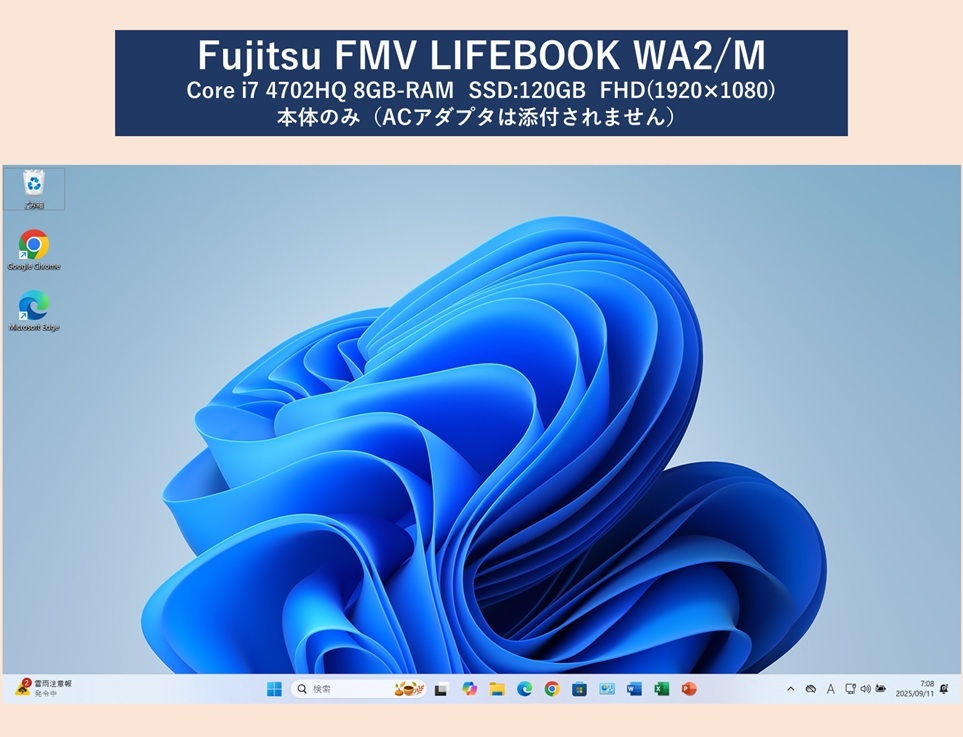 Fujitsu LIFEBOOK WA2/M Core i7 4702HQ FHD1920×1080 RAM8GB SSD120GB 15.6型 WIFI Windows11 24H2 Office2021Pro P56 收藏