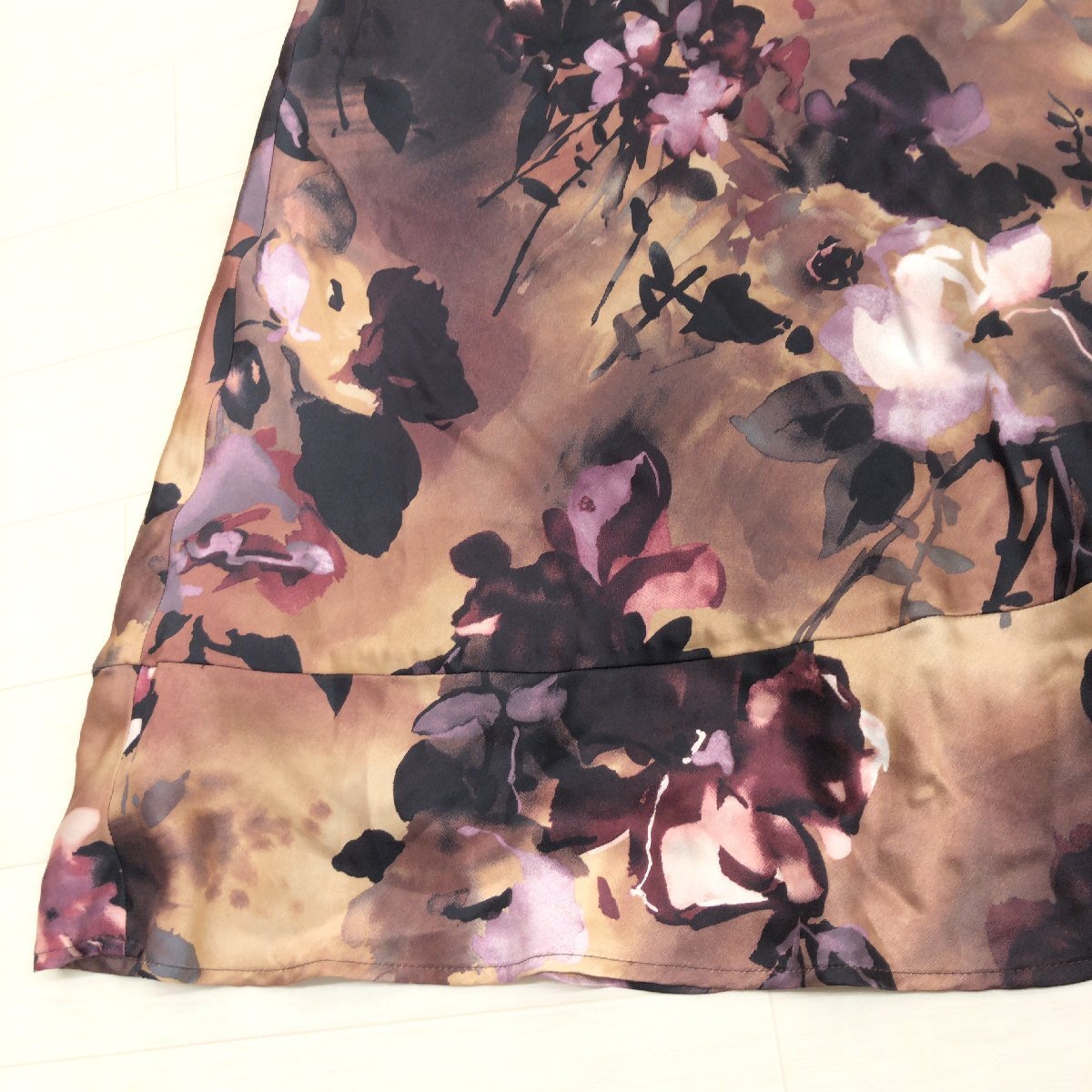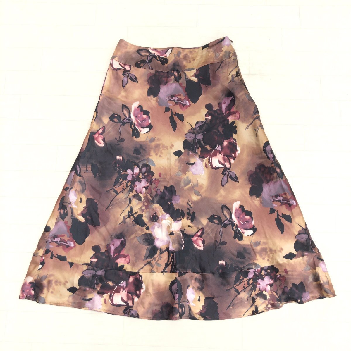 美品 LAURA ASHLEY ローラアシュレイ シルク100% 花柄 ペプラムスカート 9(M) w66 総柄 ミモレ丈 フレアスカート レディース 婦人 收藏