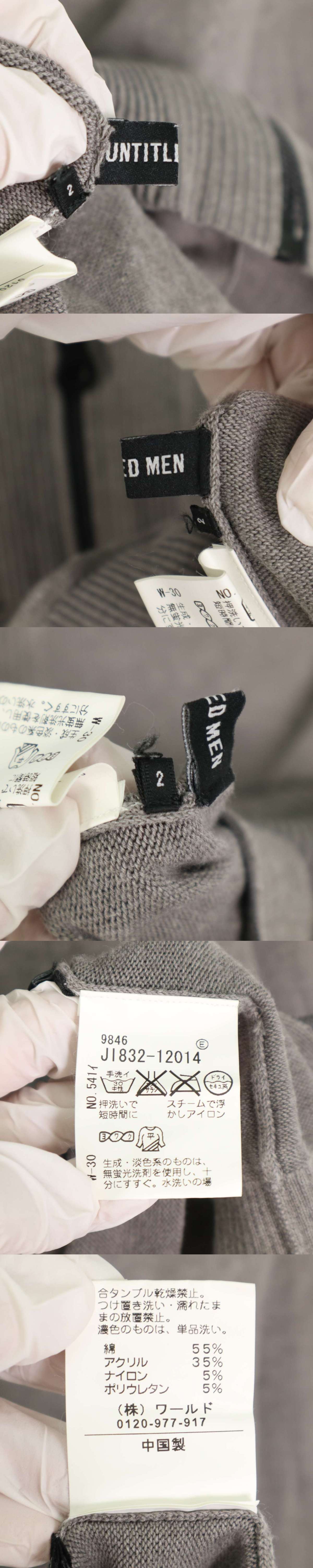 UNTITLED MEN アンタイトル メン 秋冬★ カーディガン ブルゾン ニット 羽織り Sz.2 メンズ 灰 收藏