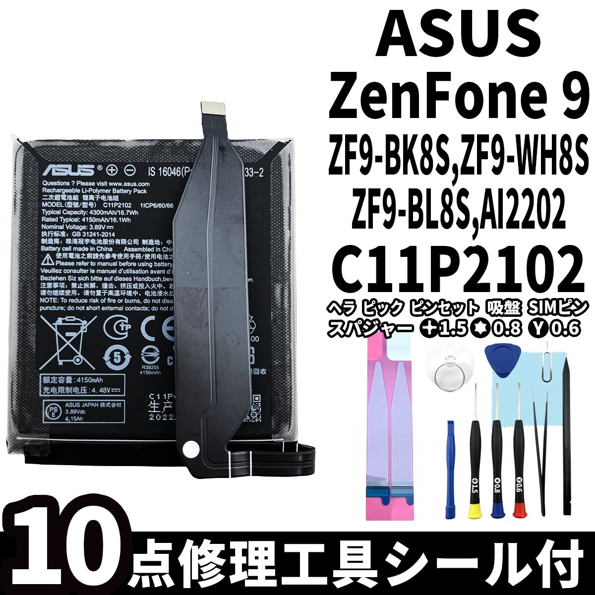 国内即日発送! 純正同等新品 ASUS ZenFone 9 バッテリー C11P2102 ZF9-BK8S128 電池パック 交換 内蔵battery 修理 両面テープ 修理工具付き 收藏