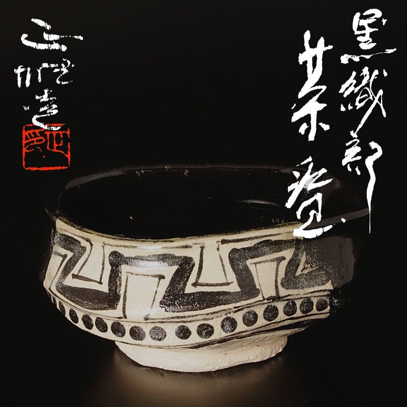 | 【古美味】中島正雄造 黒織部茶碗 茶道具 保証品 |