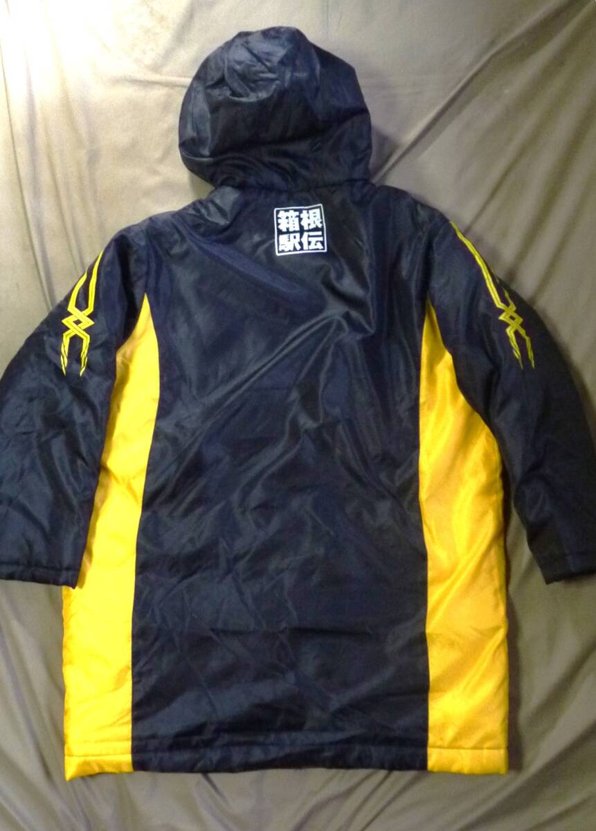 「箱根駅伝 ベンチコート」新品同様の出品です。サイズは「M」と表記されており、平置き採寸で「身幅68・肩幅54・袖丈604・着丈90」ですが、素人の採寸ですので参考程度とお考え下さい。使用感は殆んどなく新品同様で、破れ・穴あき等のダメージは見当たりませんでした。見落としが有った際は現状優先とさせていただきますので、事前に了解願います。USED品ですので、神経質な方の入札はご遠慮ください。商品の発送は、入金確認後の週末を予定しておりますので、お急ぎの方は入札を控えられて下さい。商品の発送後は、ノークレーム・ノーリターンでの対応をお願いします。