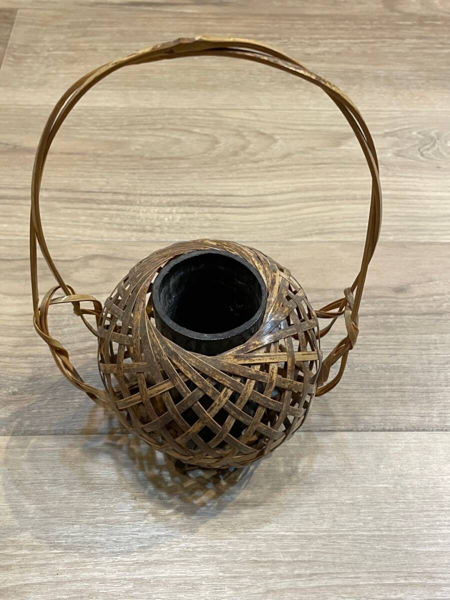 高さ約23cm 花入れ 花瓶 花器 一輪挿し 茶室 床の間 竹製 竹籠 竹細工 かご花入れ 茶道具 昭和レトロ 調度品 和風 レトロ 收藏