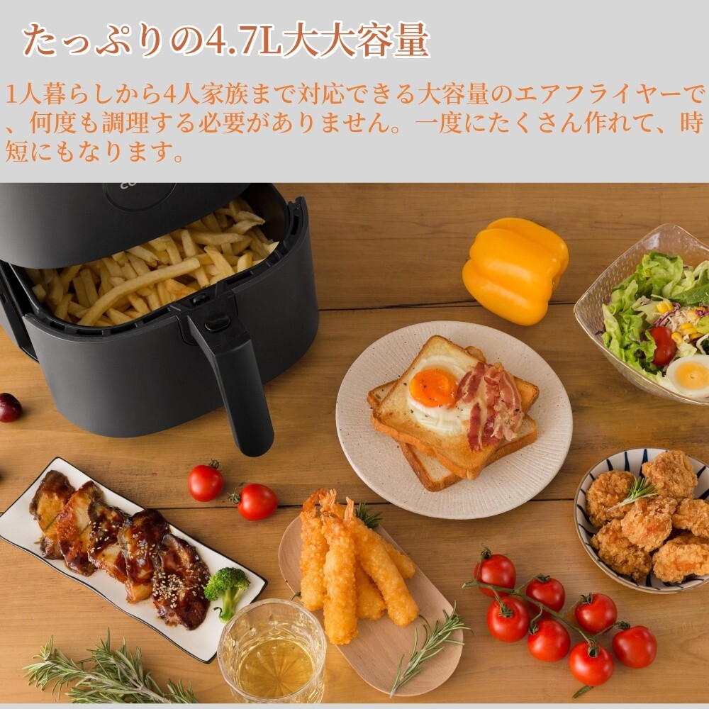 COSORI コソリ ノンフライヤー CAF-L501 エアフライヤー 4.7L大容量 電気フライヤー ノンオイル フライヤー タッチパネル レシピ付き 收藏