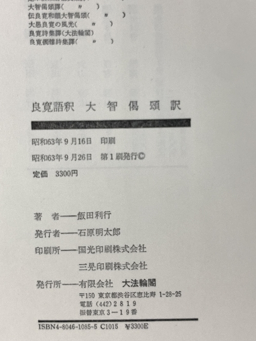 | 良寛語釈大智偈頌訳 大法輪閣 飯田 利行 | ||||