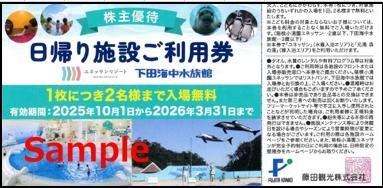 藤田観光 株主優待券 (日帰り施設利用券)です。 ※『商品名の枚数/冊数/セット数』=【販売価格】です。 有効期限:2026年03月31日 ※中止等の場合の返金には一切対応致しかねますので、予めご了承下さい。 商品自体に記載のない詳細はお答え出来かねます。 使用方法は発行会社のホームページ等より事前にご確認をお願い致します。 ※お取引に関するご不明点につきましてはご注文前に必ずお問合せ下さい。 ※「お客様情報」「ご入金」の確認は『12時まで』で〆切とさせていただいております。 (〆切時間後の対応は「弊社翌営業日」となります) ※弊社休業日・営業時間外のご入金確認・発送は出来かねます。(ストア情報を必ずご確認下さい) ※『発送時間の変更』は出来かねます。 日時指定の機能がない為、到着予定は配送会社に事前にご確認下さい。 |