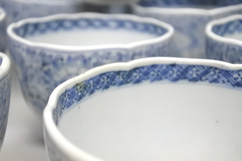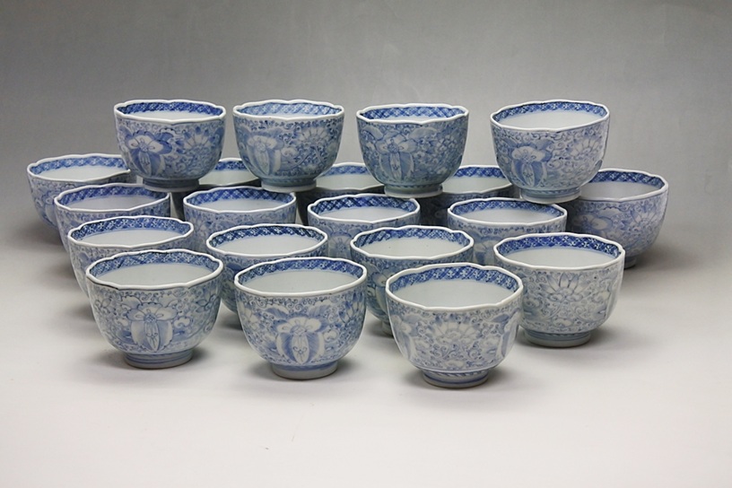 時代物 唐草大猪口 湯呑 20客セット 猪口 蕎麦猪口 湯呑 染付 古伊万里 骨董 茶器 希少 時物 旧家蔵 時代物