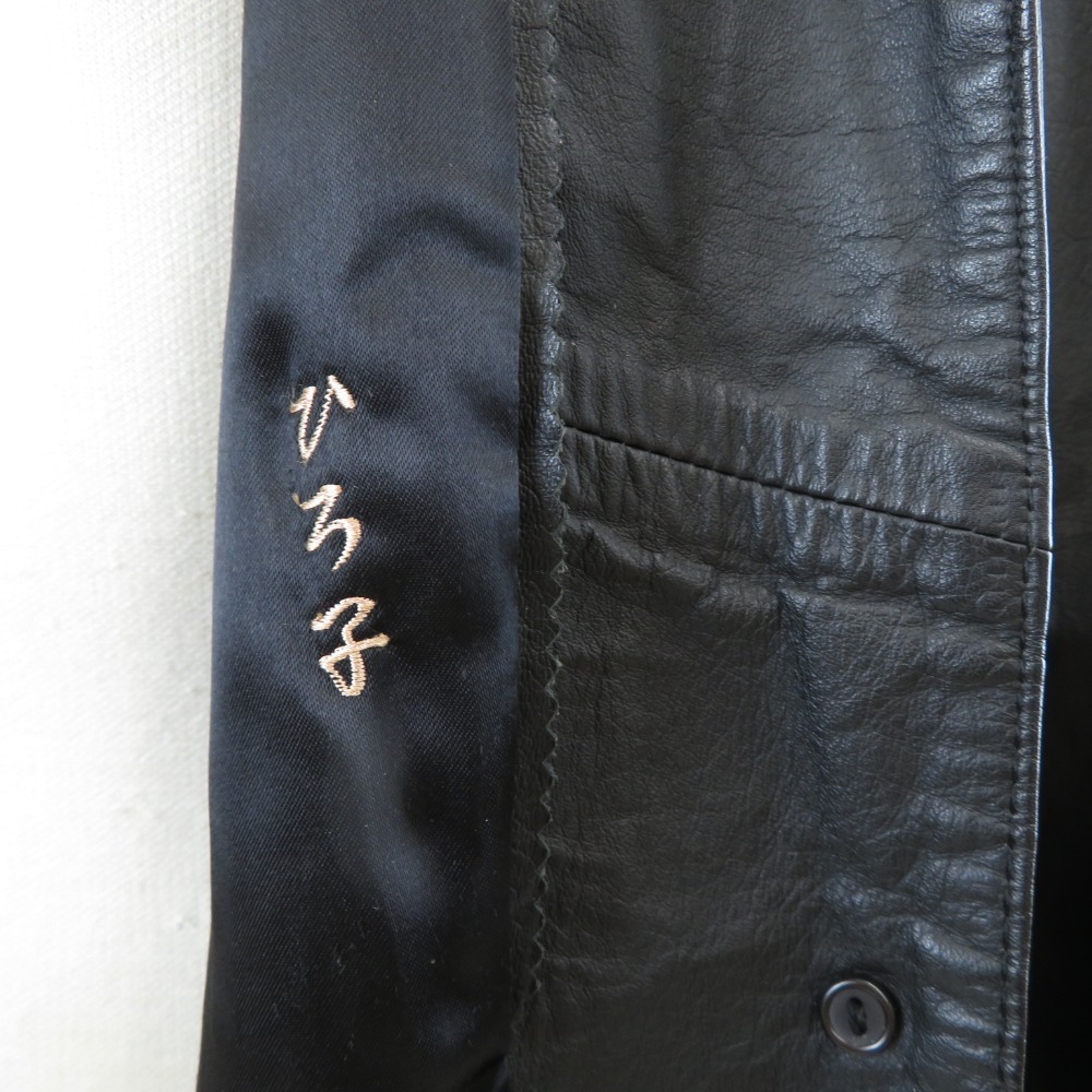 | 商品説明 | ヴィンテージ 古着 素材:表地 牛革 裏地 ナイロン47cm アセテート53% サイズ表記:F 実寸サイズ:着丈87cm 肩幅46cm 袖丈57cm バスト100cm 裾幅110cm | ||