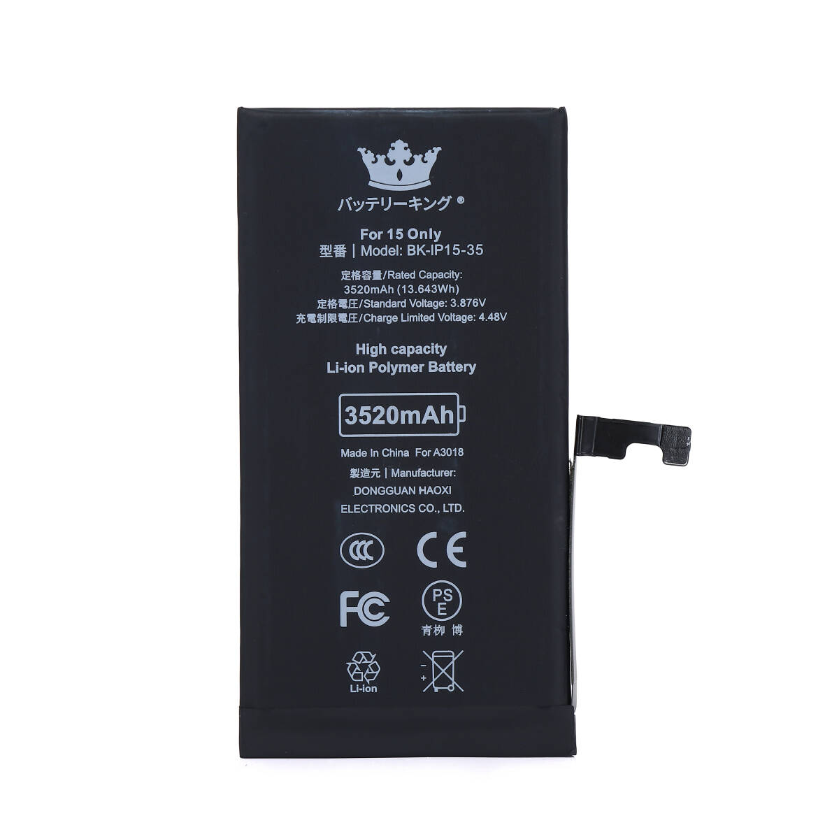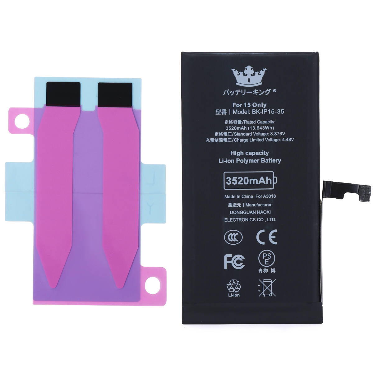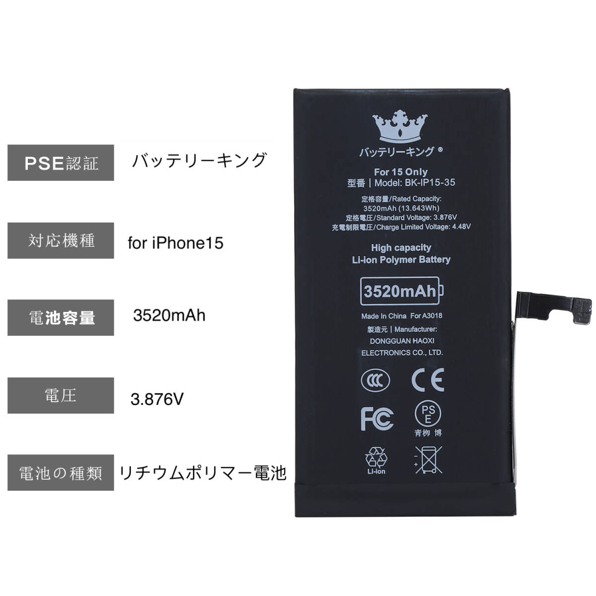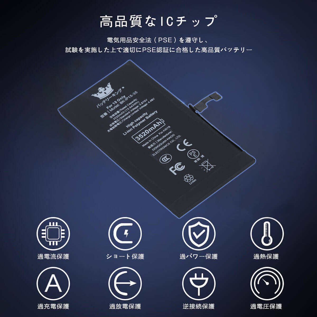 【送料無料】 PSE認証 ICチップ搭載 iPhone15 バッテリー 3520mAh 高品質 大容量 電池 交換 修理 互換品 收藏