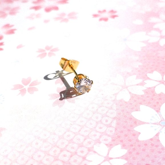 輝き抜群 片耳用(1つ)5mm ゴールドカラーサージカルステンレスCZピアス 收藏