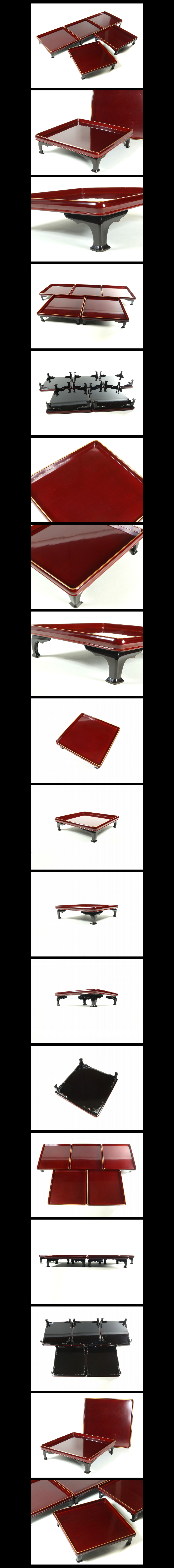 ●c4103●美色【猫足四方膳5客 塗分紅溜黒金縁/折敷四つ脚酒器盆菓子盆】検お茶会煎茶道具茶懐石紅春慶輪島塗●西瓜●