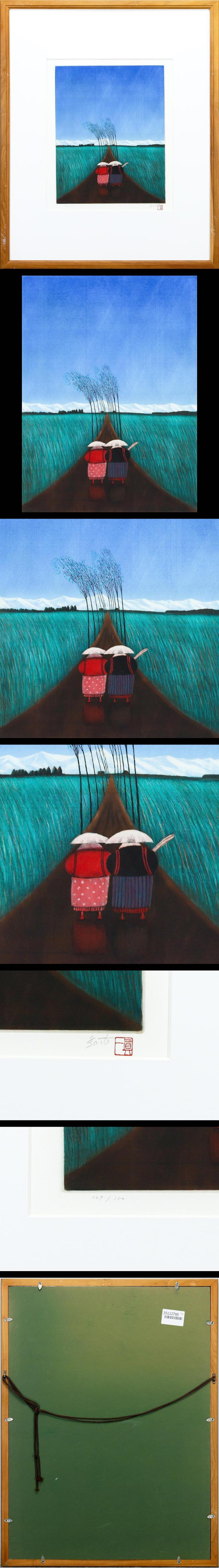 【真作】【WISH】斎藤真一「The wind」銅版画 約6号 直筆サイン ◆風なびく路二人 〇瞽女の画家 著書『瞽女―盲目の旅芸人』他 #25112786 收藏