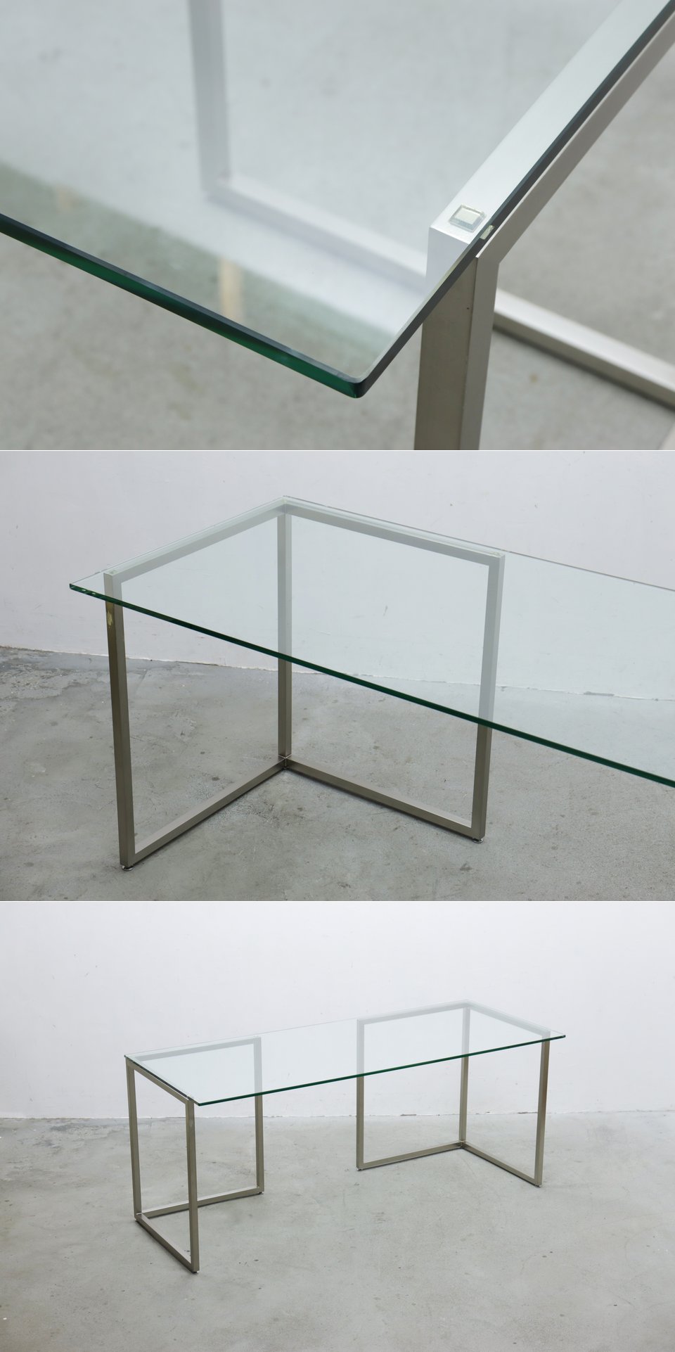 ◆BISLEY ビスレー L-FOOT ガラス天板 ステンレス デスク 机 PC 学習机 モダン/オフィス書斎テーブル展示台店舗什器/PKT25154◆ 收藏
