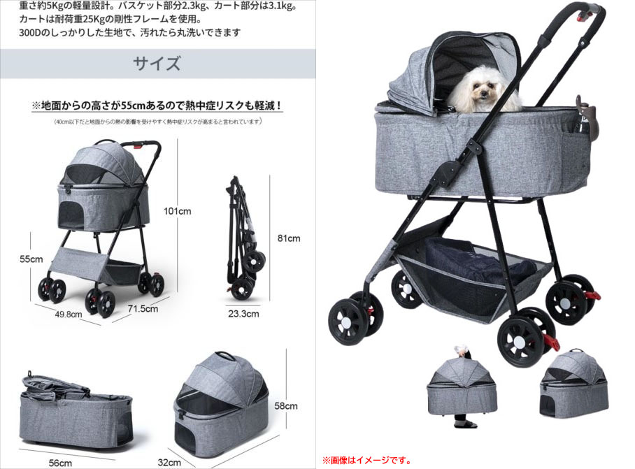 | こちらの商品は未使用品です。 外観のチェックを行いました。問題はございません。 ■元の箱に傷やスレ、テープ剥がれがございます。 ■アウトレット品につき、本体に軽い擦れや印刷物に多少の傷みが ある場合がございます。その分、お安くご提供させて頂きますので ご了承の上、お買い求め下さい。 ※トラブル防止の為にも程度は画像を見てご判断下さい。 ※一部画像はイメージ画です。 付属品:取説 ランク【S】 新品や未開封品・未使用品 (撮影の為の開封品含む) | 使用時:W49.8×D71.5×H101cm 折畳時:W49.8×D23.3×H81cm バスケット:W32×D56×H58cm (幌を閉じた状態) |