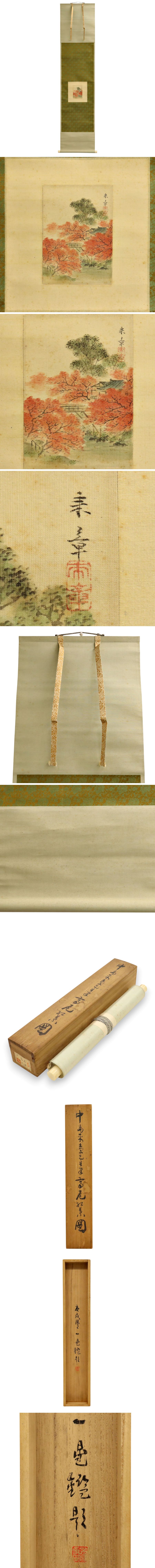 真作保証 中島来章 松島一晃識 「高尾紅葉図」 絹本 識箱 備後 掛軸 書画 骨董品 美術品 1901-41vqN 收藏