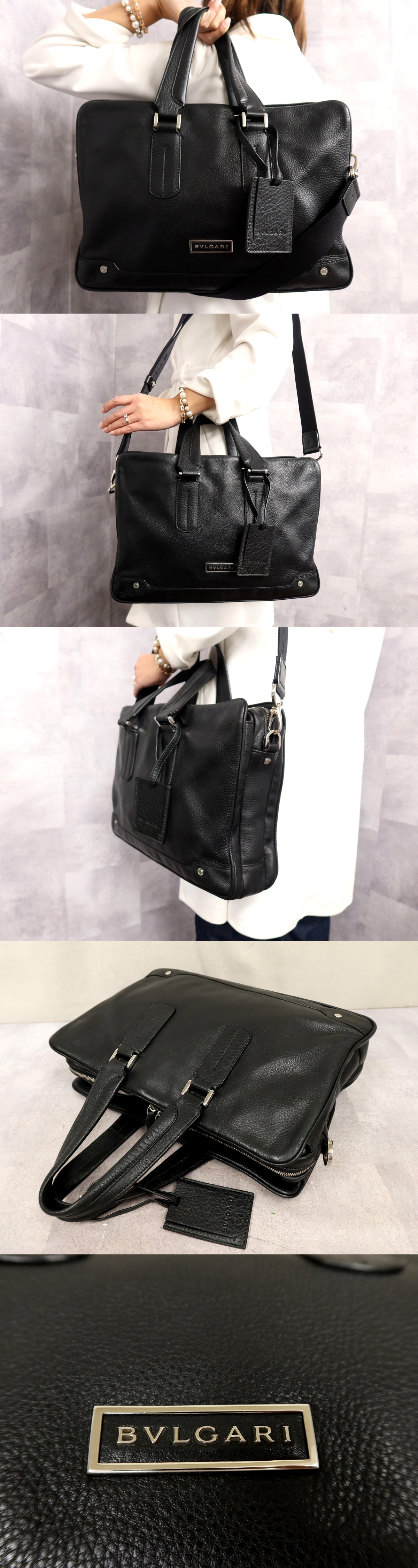 ●超美品●BVLGARI ブルガリ●メンズ●ロゴ金具●カーフ レザー 本革●2way ビジネス バッグ●黒●シルバー金具●A4 書類 かばん●Js63655 收藏