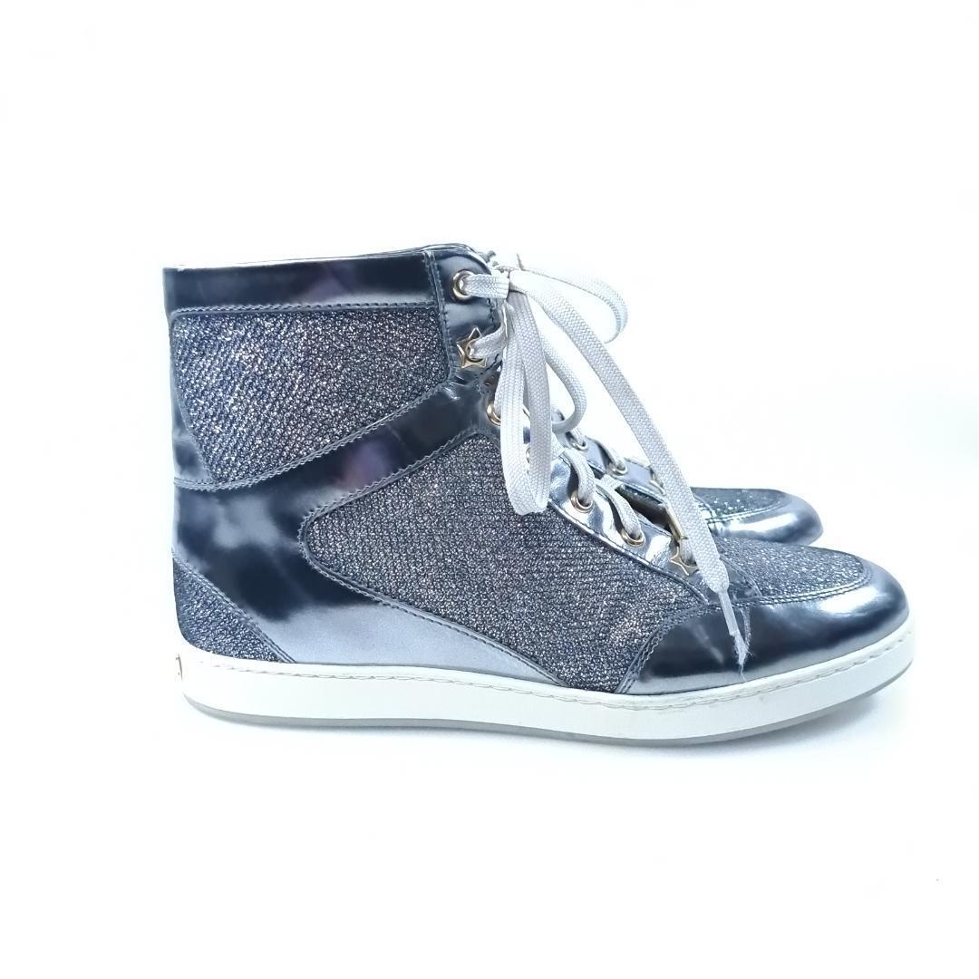 【美品】 JIMMYCHOO ハイカットスニーカー ラメ シルバー 37 レディース レースアップ ジミーチュウ hws01558 收藏