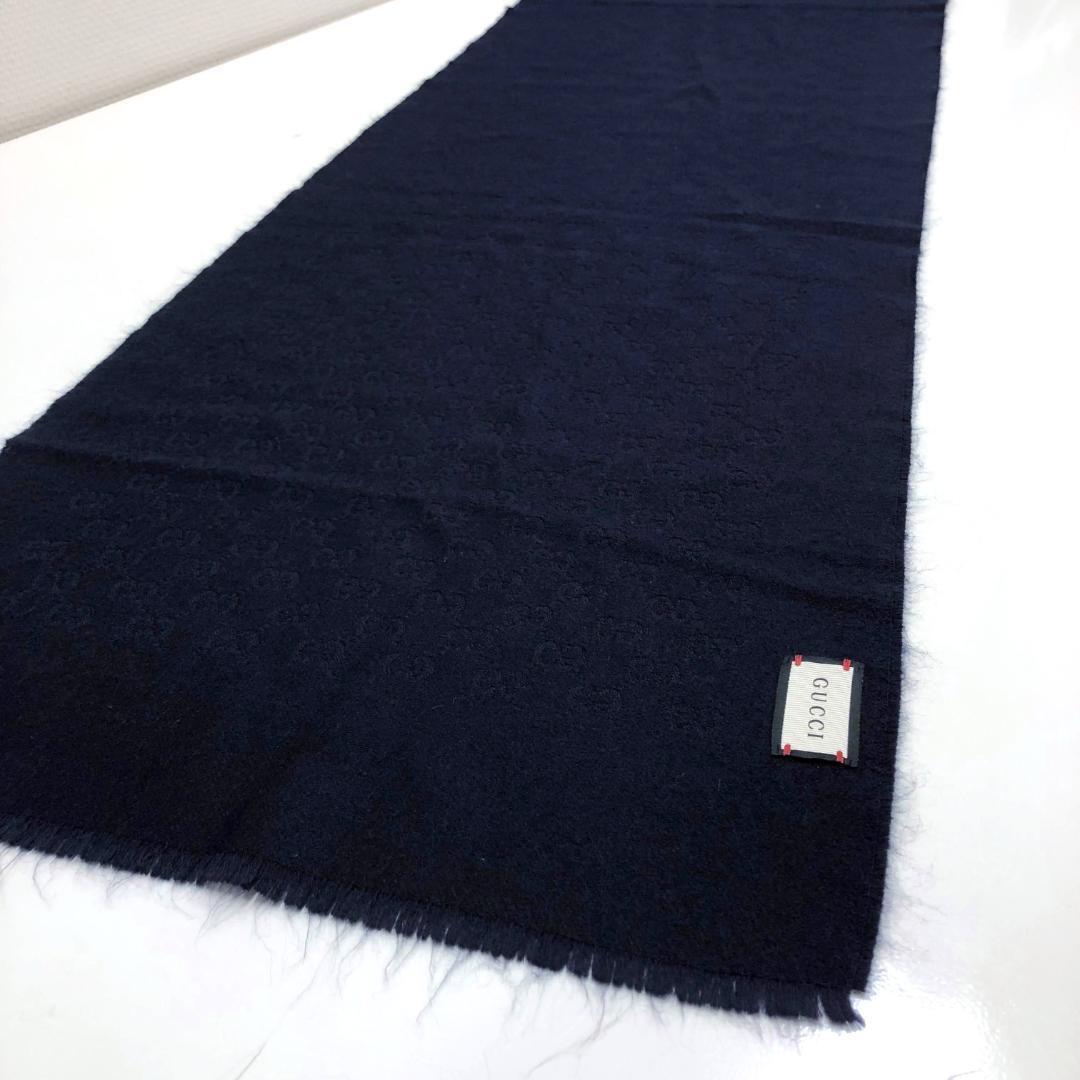 ☆美品☆グッチ GG柄 マフラー ネイビー ユニセックス カシミア100% 收藏