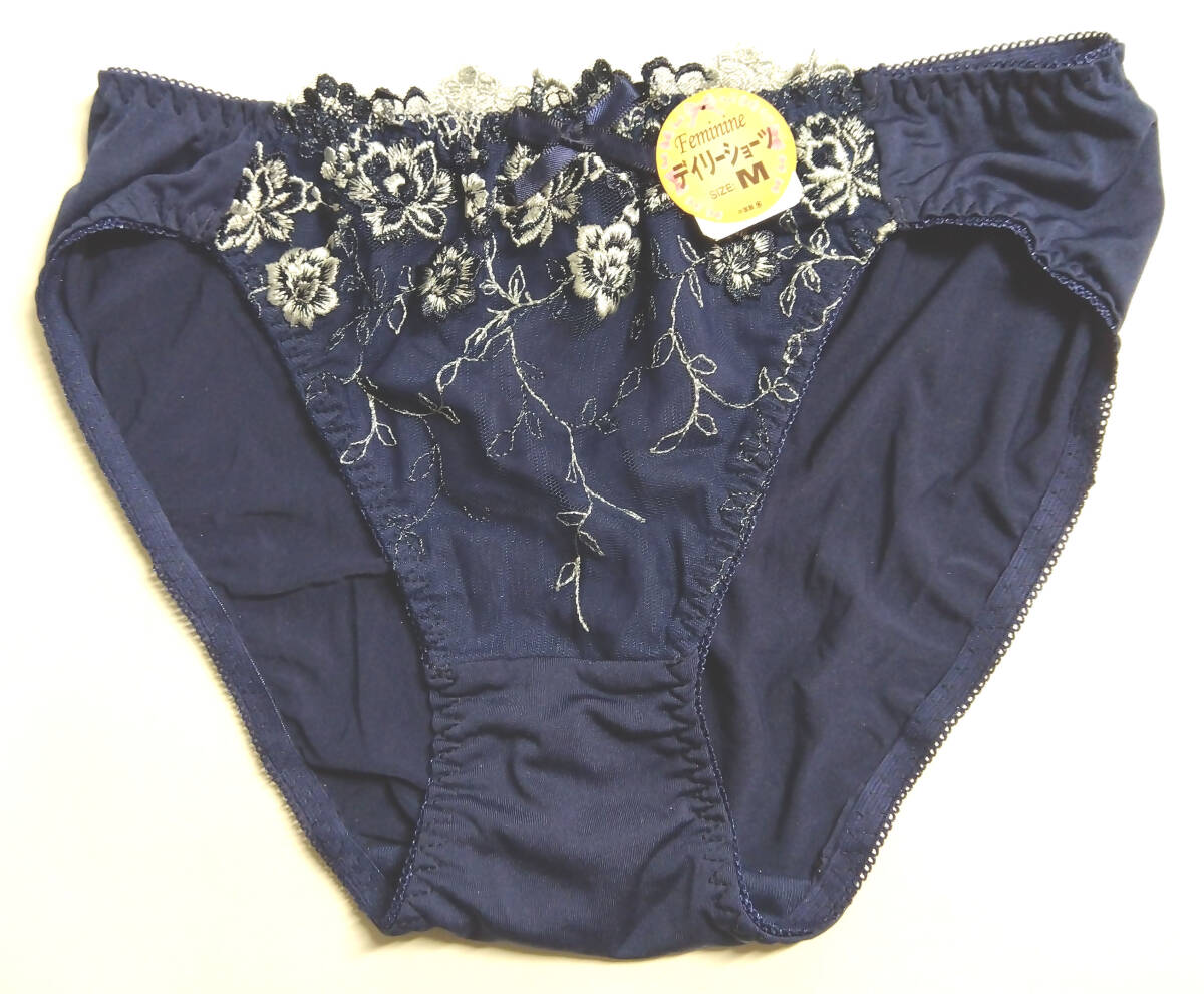 新品 送料無料 レースショーツ 刺繍レディース Mサイズ ネイビー 高級感 收藏