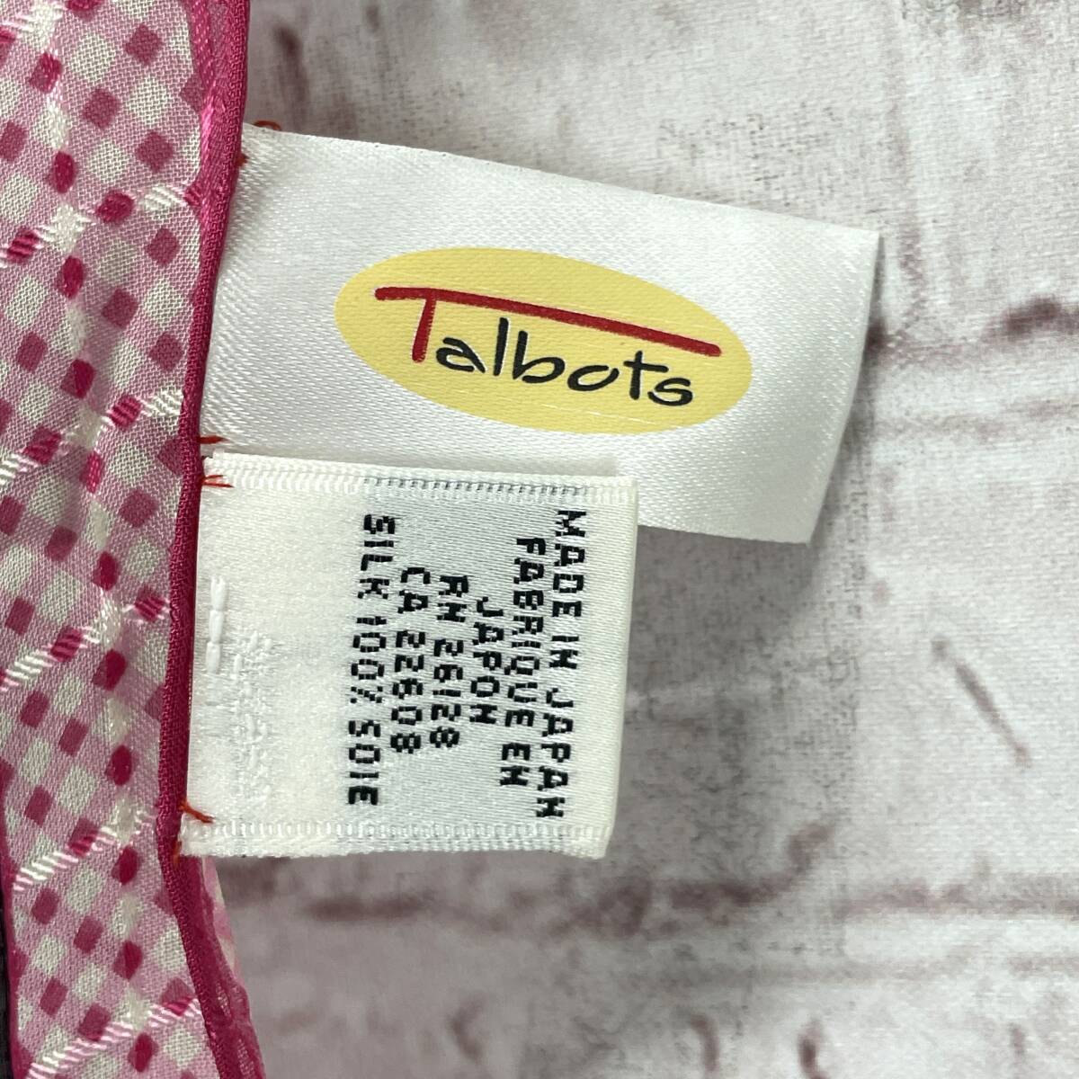 talbots タルボット スカーフ バンダナ 花柄 フラワー ブラック×ピンク ギンガムチェック 格子柄 シルク100% 日本製 エレガント 收藏