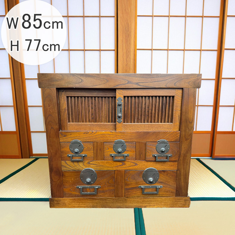 送料無料 日本製 高級 けやき タンス W85cm 正方形 チェスト 帳場箪笥 たんす 国産 天然 ケヤキ 欅 和 レトロ 古民家 家具 木製 訳あり品 收藏