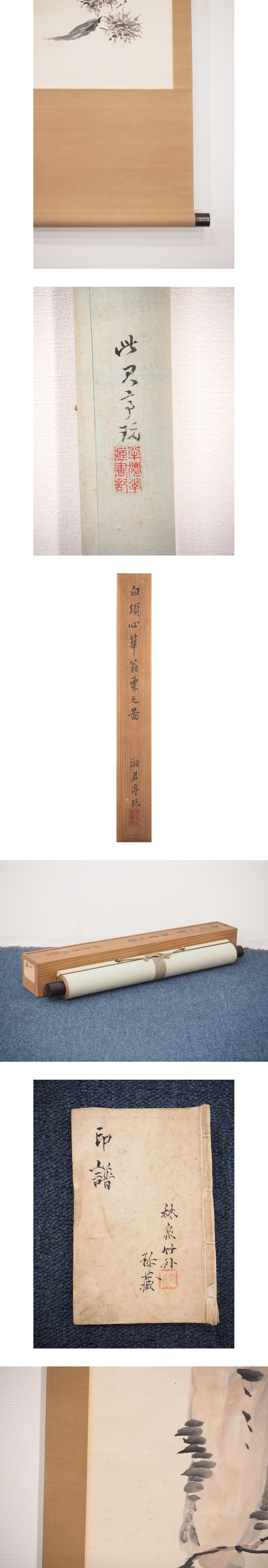 【真作】【渡鹿庵】[白須心華] 20332 コレクター放出品 掛軸 日本画 栗之図 合箱 紙本 花鳥図 大分 臼杵 師甲斐虎山 在銘 收藏