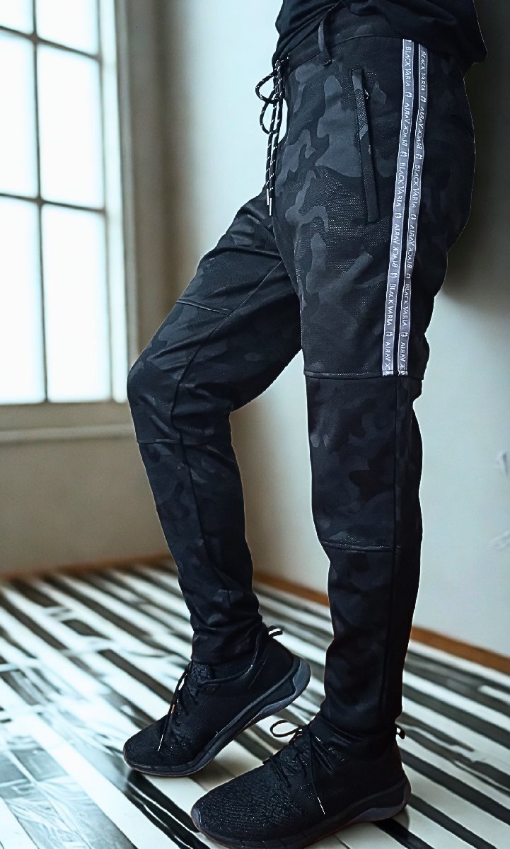 943032-camo BLACK VARIA サイドライン ジャージ 細身 スリム ボトムス ストレッチ スウェットパンツ メンズ(迷彩柄ブラック黒) M 收藏