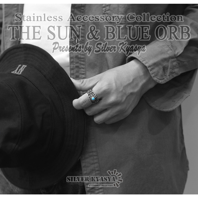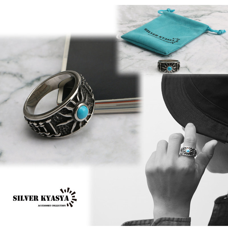 (28号) ステンレス 太陽 リング 指輪 ターコイズブルー シルバー 銀色 バイクチェーン ごつめ 收藏