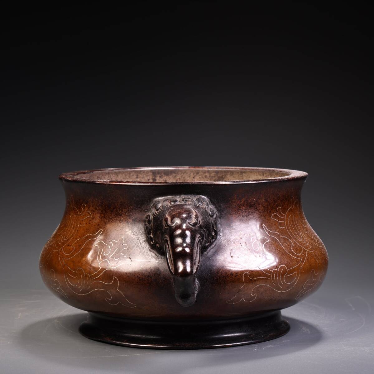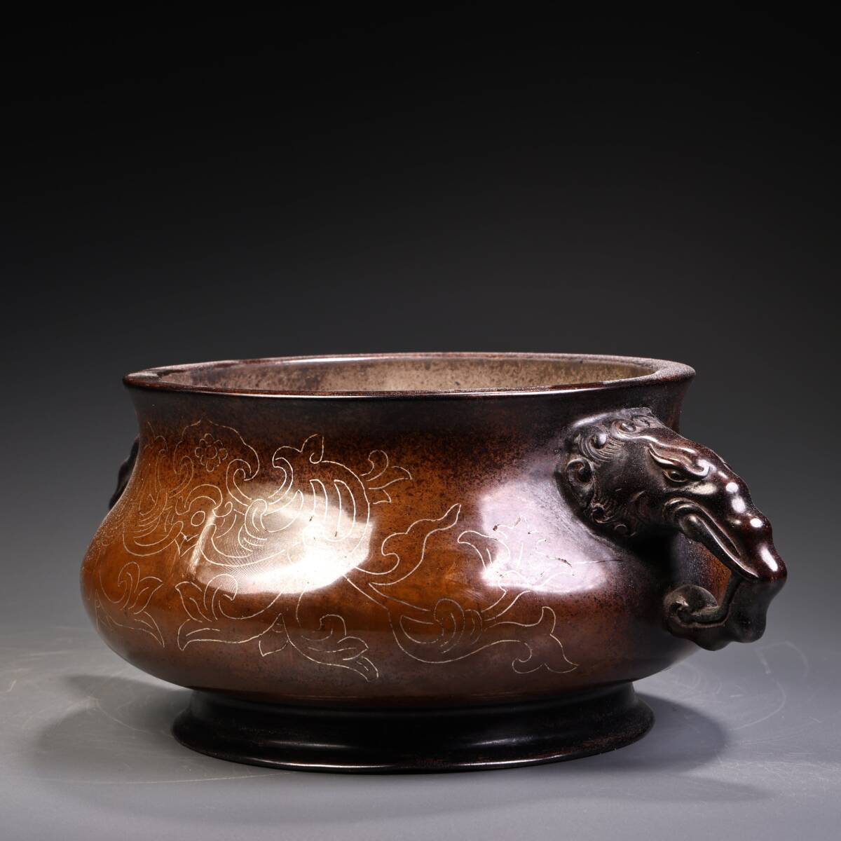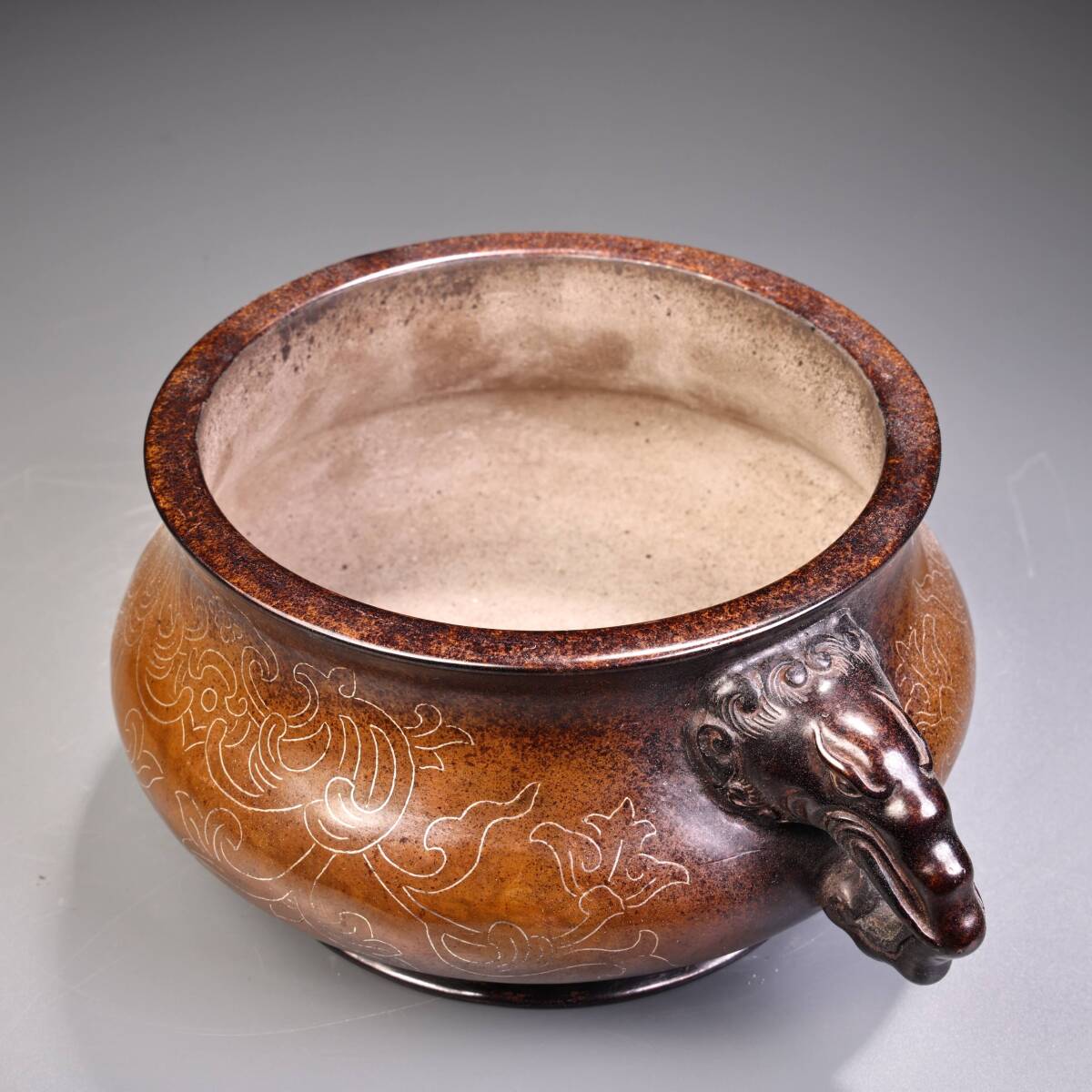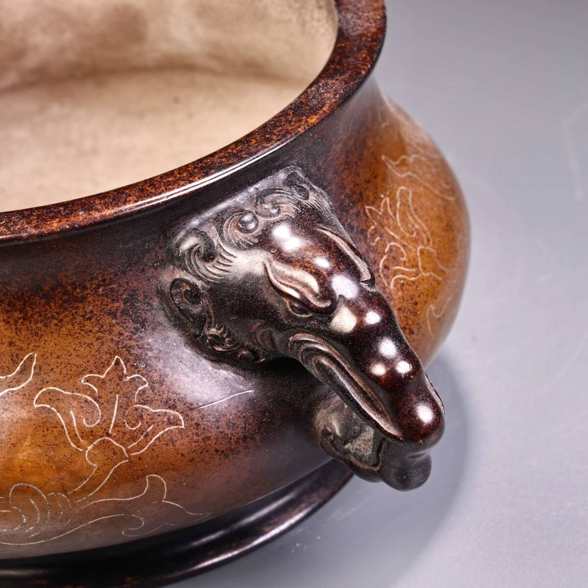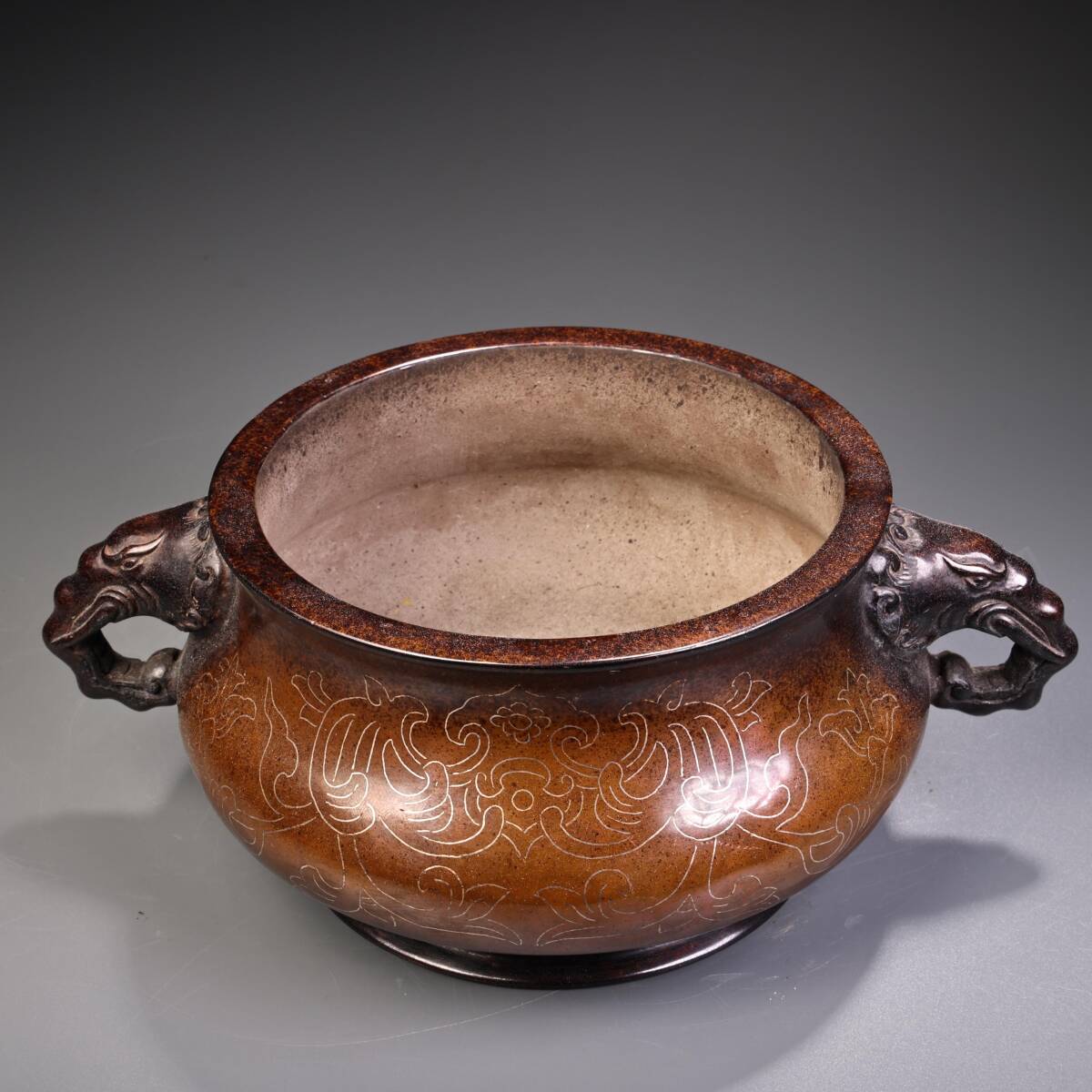 唐物 清時代 宮廷御用 純銅 紫銅 モザイク銀糸 双竜香炉 香炉 香道具 銅製品 銅器 極細工 古美術品 時代物 中国古玩 骨董品 wn10.1 收藏