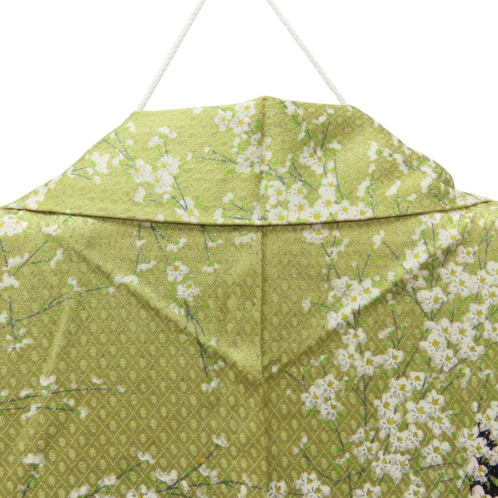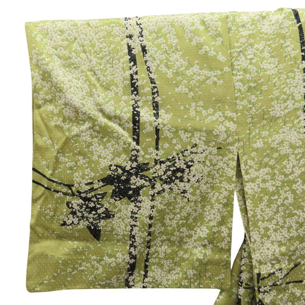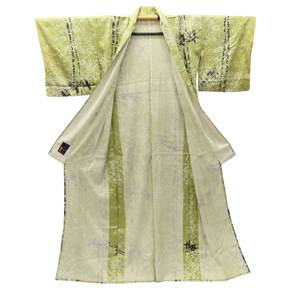 中古 小紋 単衣 正絹 若草色 くすみ緑系 総柄 小花 和装 呉服 和服 きもの レディース 女性 收藏