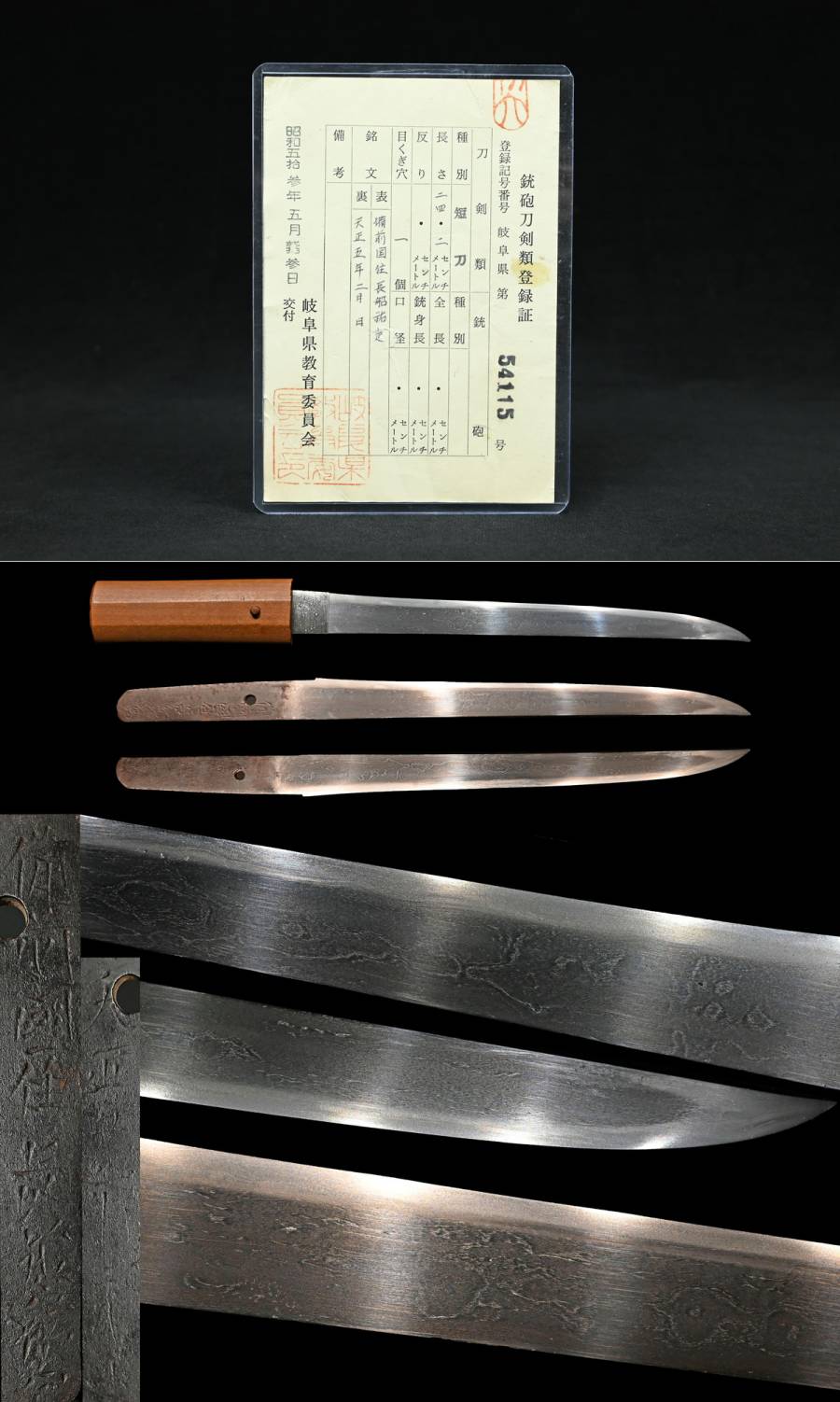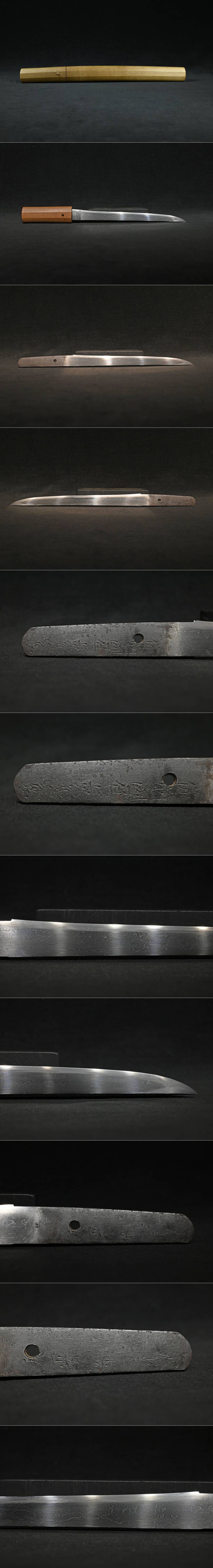 【昊】備前国住長船祐定 天正五年二月日 鎧通造 直刃 杢目肌 刃渡り24.2cm 刀剣武具[OJ29Bi] 收藏