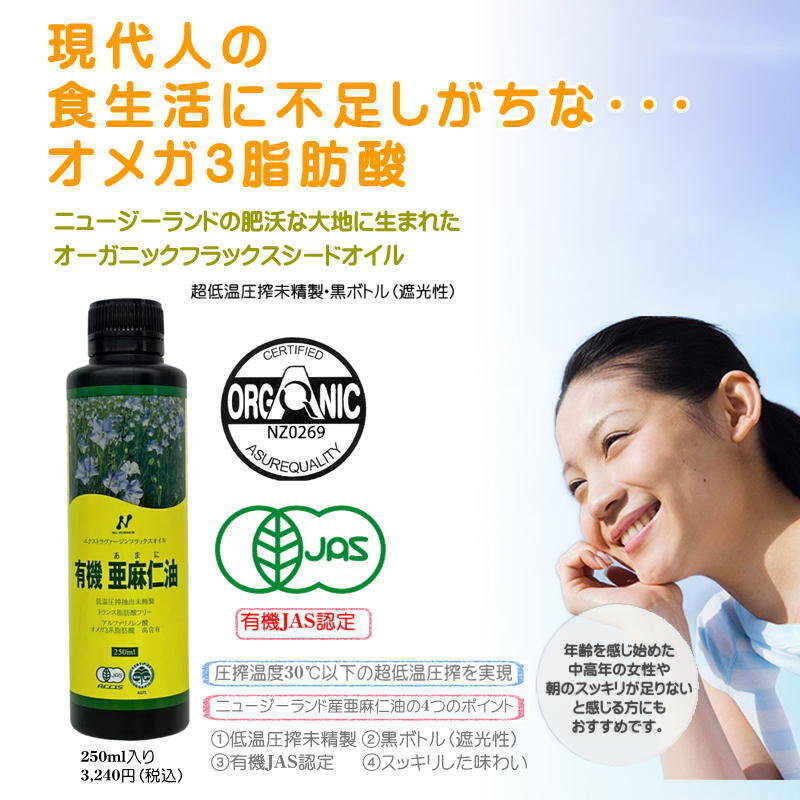 亜麻仁油 ニュージーランド産 250ml ニューサイエンス 有機 JASフラックス オイル 爆買 收藏