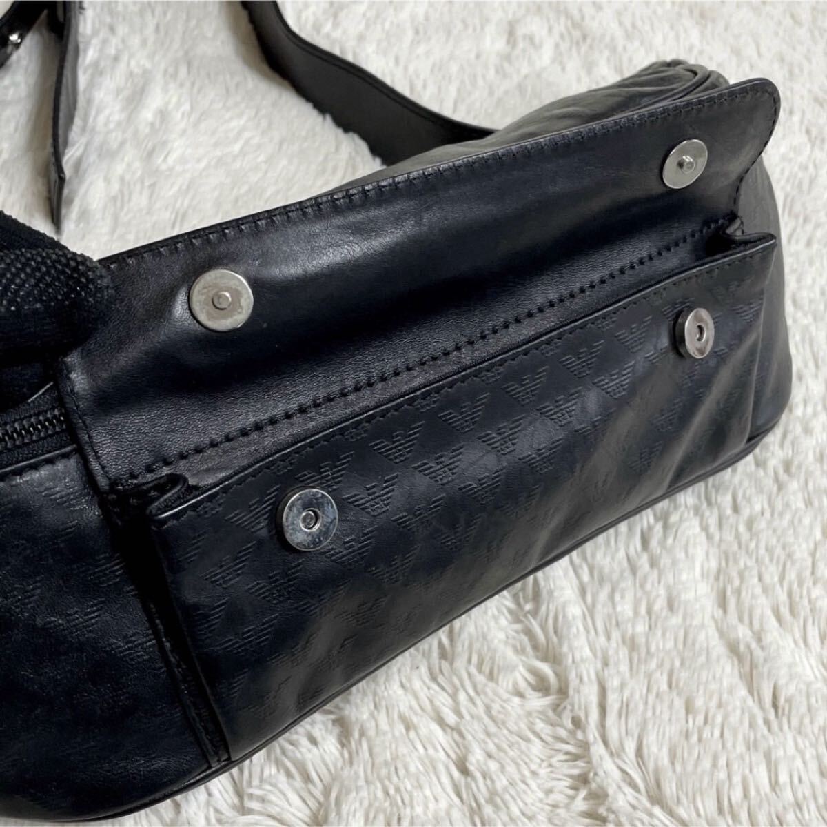 美品 希少 エンポリオアルマーニ イーグル ボディバッグ ウエストバッグ 黒 EMPORIO ARMANI 收藏