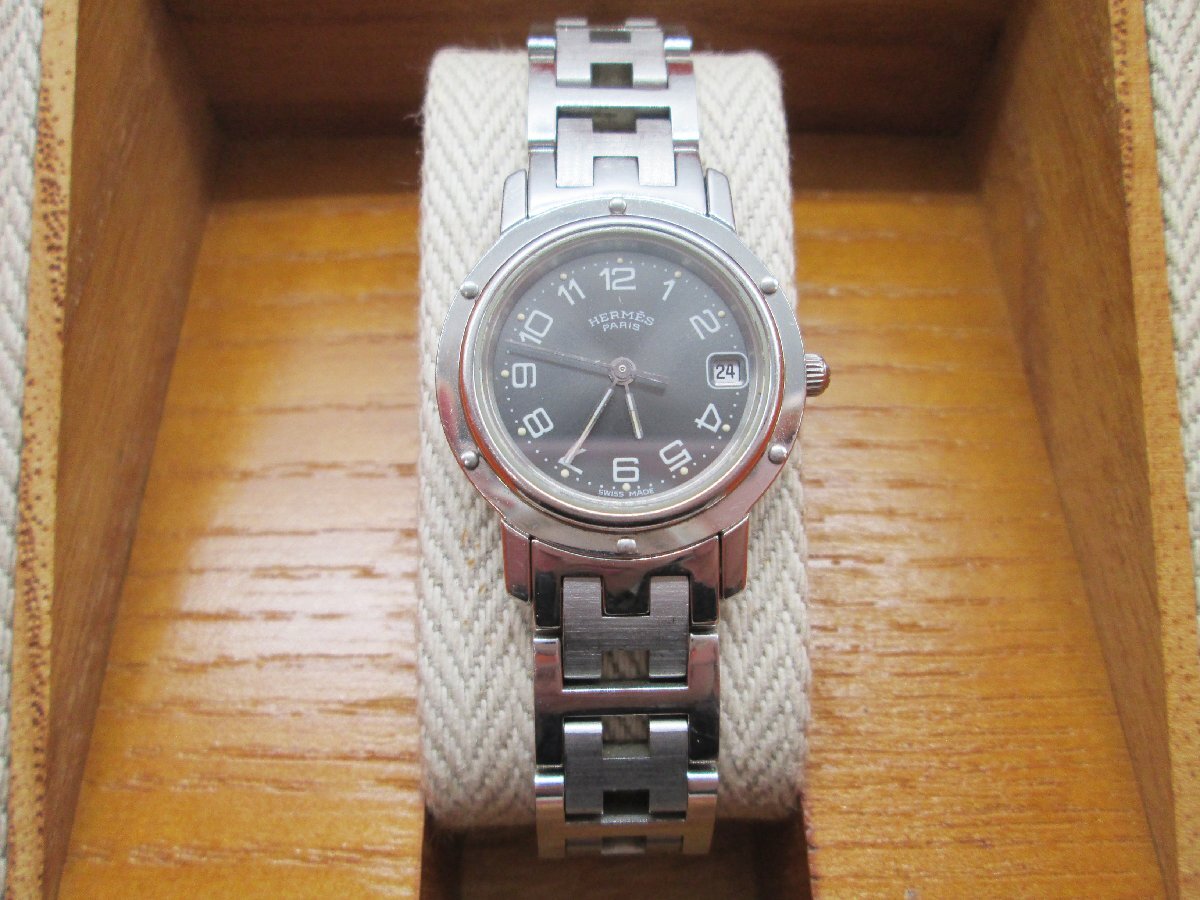 ■【稼働品】 HERMES エルメス クリッパー CL4.210 黒文字盤 Dバックル レディース 腕時計 クォーツ QZ 外箱 替えコマ■/A 收藏