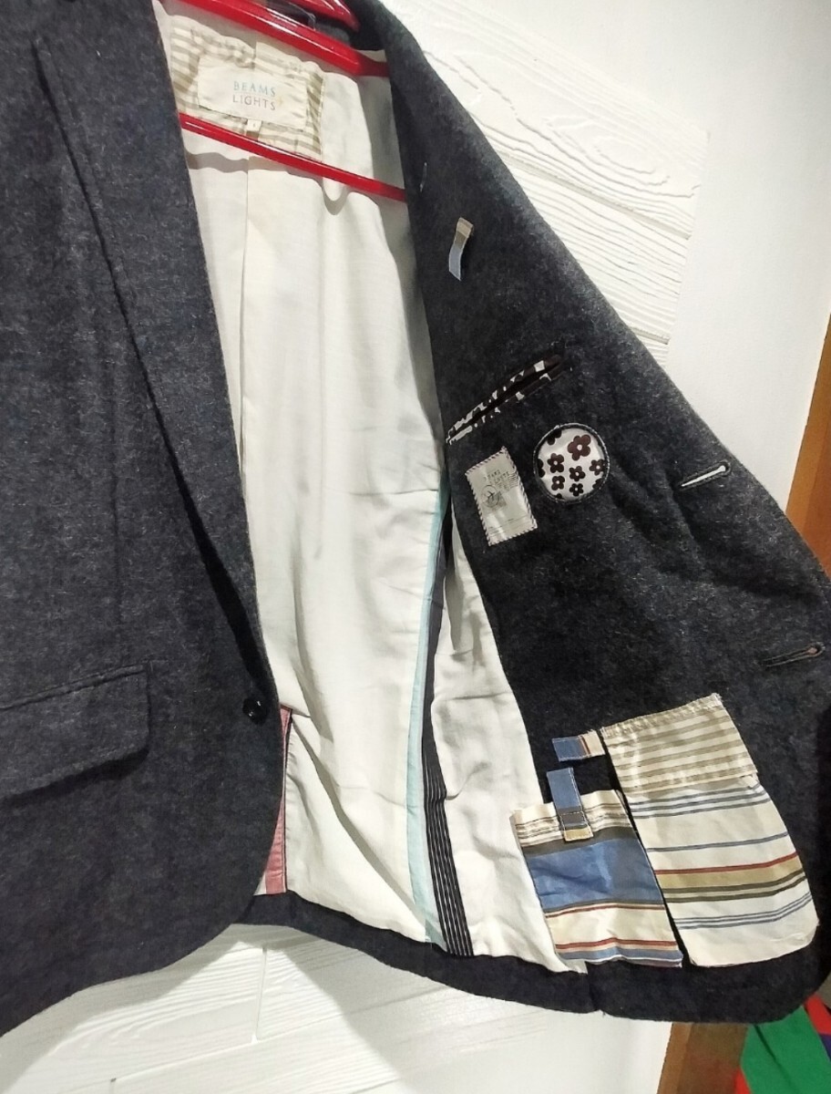 【BEAMS LIGHTS】ビームス ライツ ウール混 テーラードジャケット メンズS 裏地がお洒落 秋冬 カジュアル 收藏