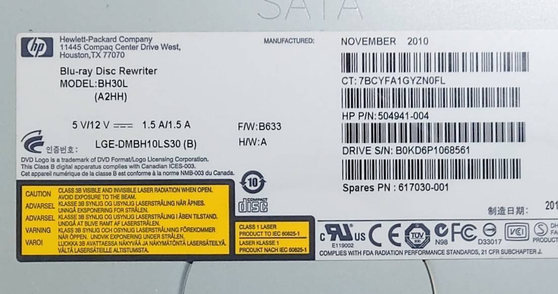 KN3714 【中古品】BH30L hp Blu-rayドライブ BD DVD 收藏