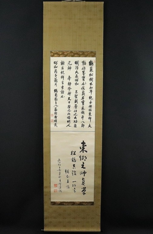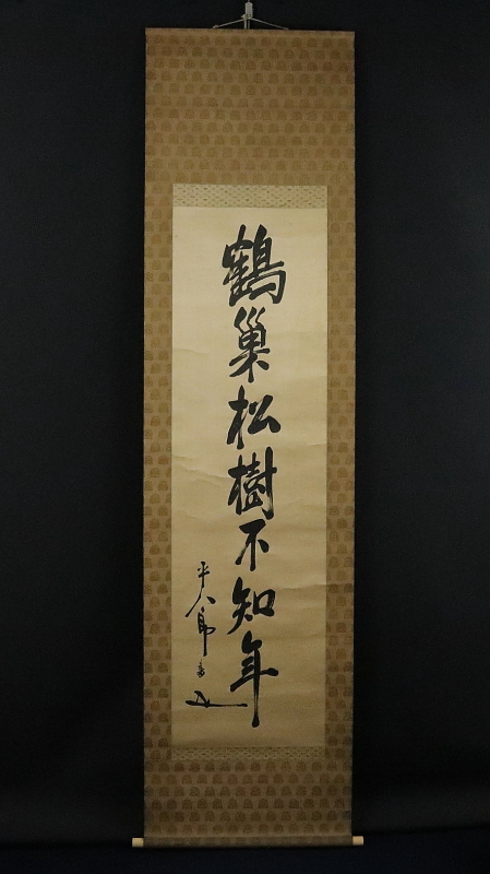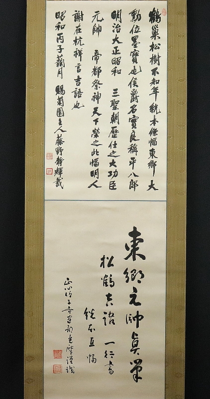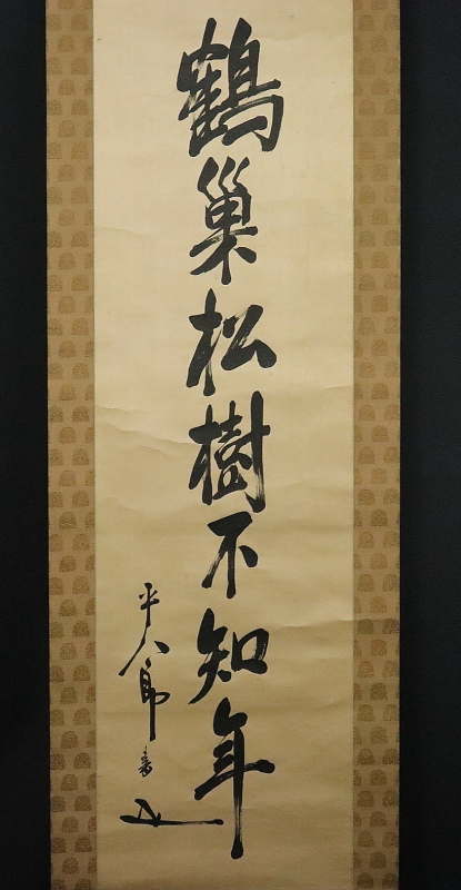 11564■【真作】東郷平八郎 書 「鶴巣松樹不知年」 絖本 肉筆 副翰有 藤野君山・建部光磨極 帝国海軍元帥 連合艦隊司令長官 掛軸 收藏