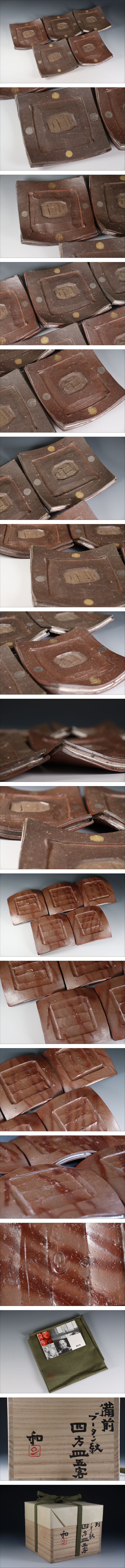 | 商品説明 | 商品名:蔵出し品 備前焼 藤原和 ブータン紋 四方皿 五客 付属品:四方桟共箱、陶歴、共布あり。 サイズ:高さ3cm、口径13,5cm、高台5,5cm。 状態:無傷になります。 |