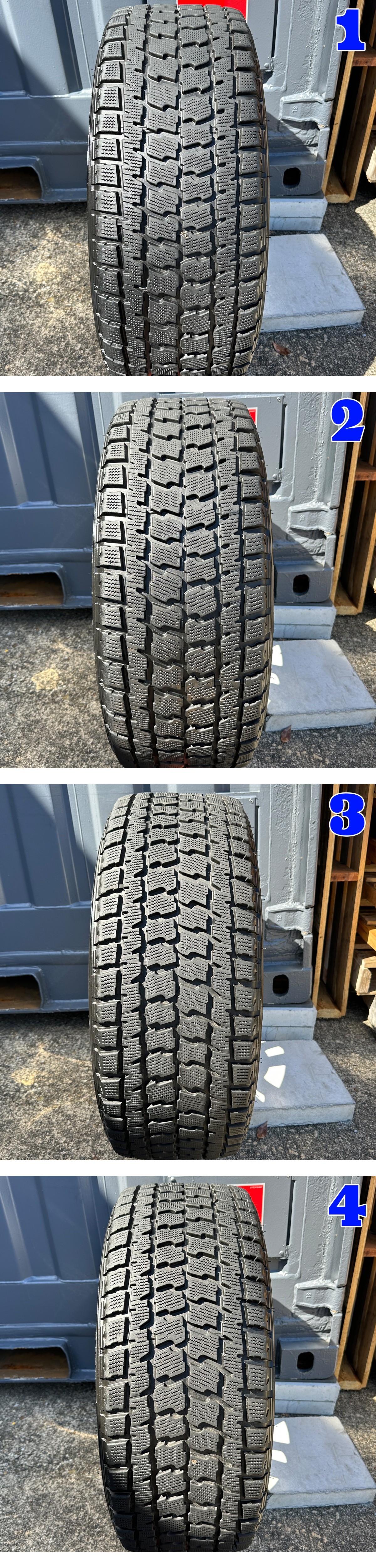 2007年モデルのUSトヨタ タンドラから外しました社外18インチアルミホイールGOODYEAR WRANGLER I P/N 285/60R18スタッドレスタイヤ付き4本セットの出品です。 タンドラの他にもセコイア、ランクル200系に取付可能です! ![]() powered by auction-labo.com 社外ホイール ★ホイールのサイズ 18x8.5J 5H150 オフセット +55 ハブ径約110mm ★ホイールの状態ですが、4本とも全体的に腐食がございます。気になる箇所が多かった為ディスク面を3分割+センター部分の画像をそれぞれアップで撮っていますので状態などご確認ください。もしかしたら多少写っていない箇所もあるかもしれませんので全体の雰囲気としてお考えください。 あくまで中古品ですので画像では分かりにくいキズや汚れなどございます。 適合車種 2007-2021y トヨタ タンドラ 2008-2021y トヨタ セコイア 2008-2021y トヨタ ランクル200系 ※取り付けのナットは付属しませんので、落札者様の方でご用意してください。 ※空気圧センサーはついているかわからない為、付いて無い物と思ってください。 ★タイヤのメーカー GOODYEAR WRANGLER I P/N スタッドレスタイヤ ★タイヤサイズ 285/60R18 ★製造年 1本目 2013年45週 / 2本目 2013年45週 / 3本目 2013年45週 / 4本目 2013年45週 ★タイヤの溝 1本目 約8.8mm / 2本目 約8.5mm / 3本目 約7.4mm / 4本目 約8.1mm ※上記数値はタイヤのセンター部分で計測 ※経過年数による経年劣化や若干の片べりが見受けられますので画像をよく見て判断してください。 ★エアー漏れやパンクはありません。 ※あくまでも中古品ですので、画像をよく見て参考にして判断してください。(携帯等でご覧の方は必ずご入札前にパソコンで画像をご確認ください) ※気になる事があればご質問よりお気軽にお問い合わせください!! ★ガレージYAMADA(株式会社YAMADA) 愛知県津島市百島町字三正六歩29-2 TEL 0567-28-4649 FAX 0567-28-4749 定休日 日曜日 営業時間 午前10時~午後19時 インスタ 【 garage_yamada_official 】 ブログはこちらをクリック!! 【管理番号】YAM-5H150-01 |