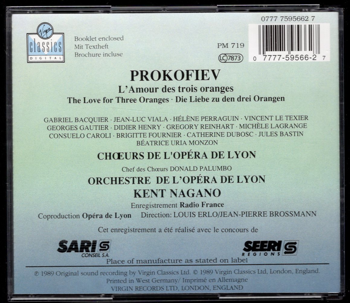 CD プロコフィエフ:歌劇「3つのオレンジへの恋」 バキエ、バスタン他 ケント・ナガノ指揮リヨン国立歌劇場管弦楽団他 收藏