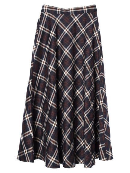 バイヤスチェック柄のデザインがフェミニンなムードを高めるスカート。