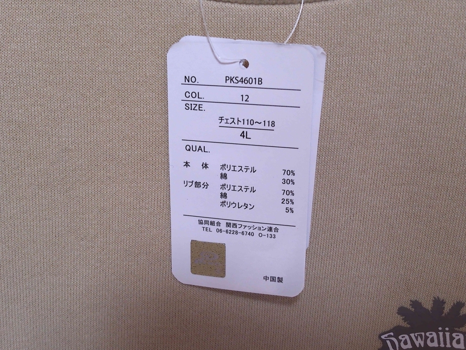 | 商品情報 | 未使用 素材 本体 ポリエステル70% 綿30% リブ部分 ポリエステル70% 綿25% ポリウレタン5% |