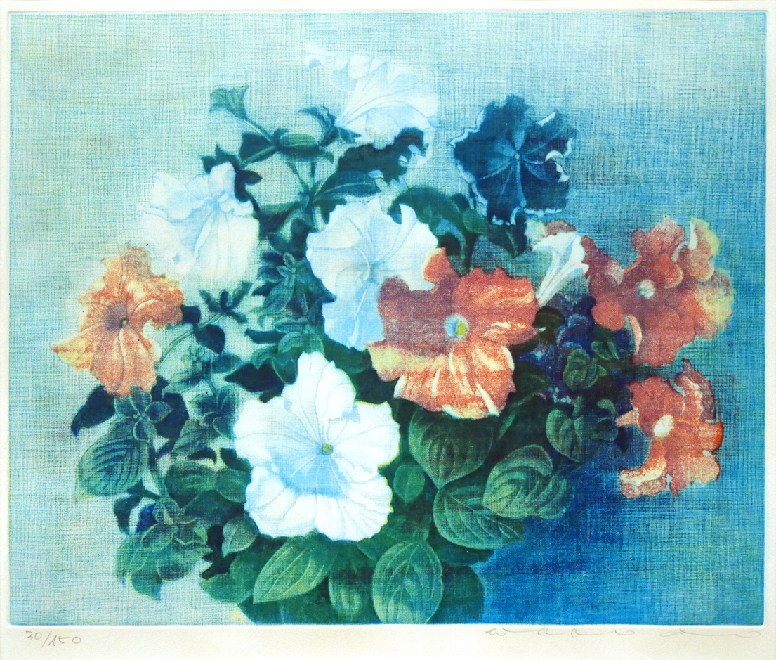 伊藤 倭子「ペチュニア」銅版画・限定サイン入り■日本版画協会会員■全道展会員■札幌三越■百貨店個展【小竹美術】真作保証 收藏