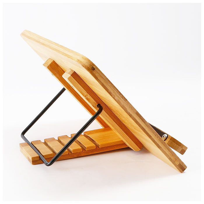 | 商品説明 | ・自然素材の竹で作られた、ナチュラルな卓上式ブックスタンド。 ・見やすい角度に合わせて5段階の調節ができるので、首や肩への負担も軽減。 ・本のページを押さえるアームが付いているから、ページが勝手に閉じてしまう心配もなし。ストレスフリーで読書が可能に。 ・アーム部分にはシリコンのカバー付きなので、本にキズが付きにくいのも嬉しいポイント。 ・使用しない時にはコンパクトに折りたためるヒンジ付き。収納や持ち運びも楽ちん。 ・本や雑誌だけでなくタブレットを設置すれば、リラックスした姿勢で動画鑑賞もできる♪ ・お料理の際のレシピの確認や、譜面台として使っても♪ |
