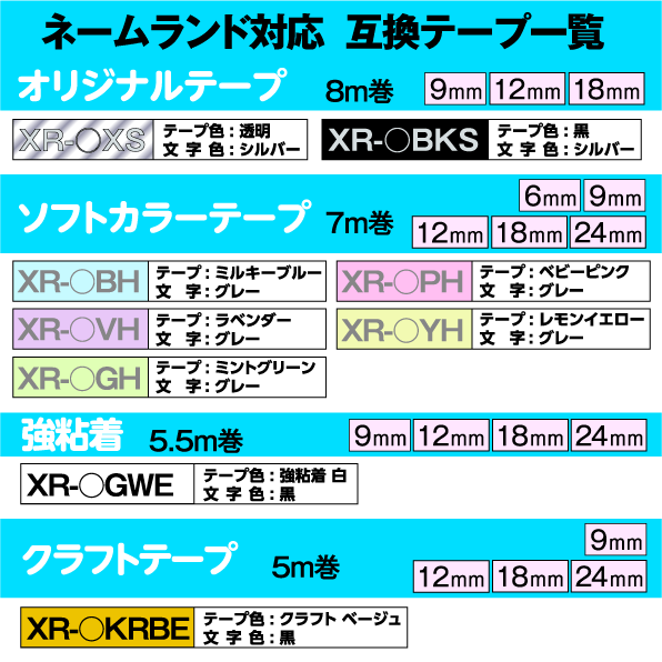 カシオ XR-12FYW 互換ラベルテープ CASIO(PT-12FYW)互換 テープ