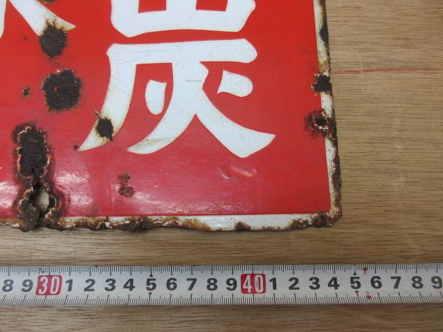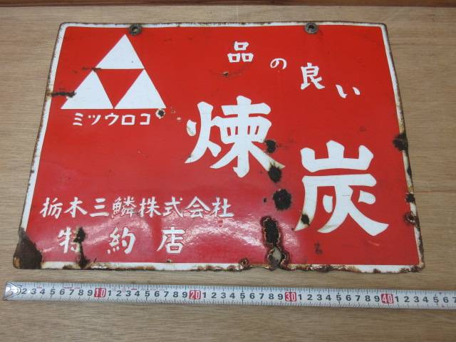 当時物 両面琺瑯看板 品の良い ミツウロコ練炭 栃木三鱗株式会社特約店 33.3×45.5㎝ ホーロー看板昭和レトロP 收藏