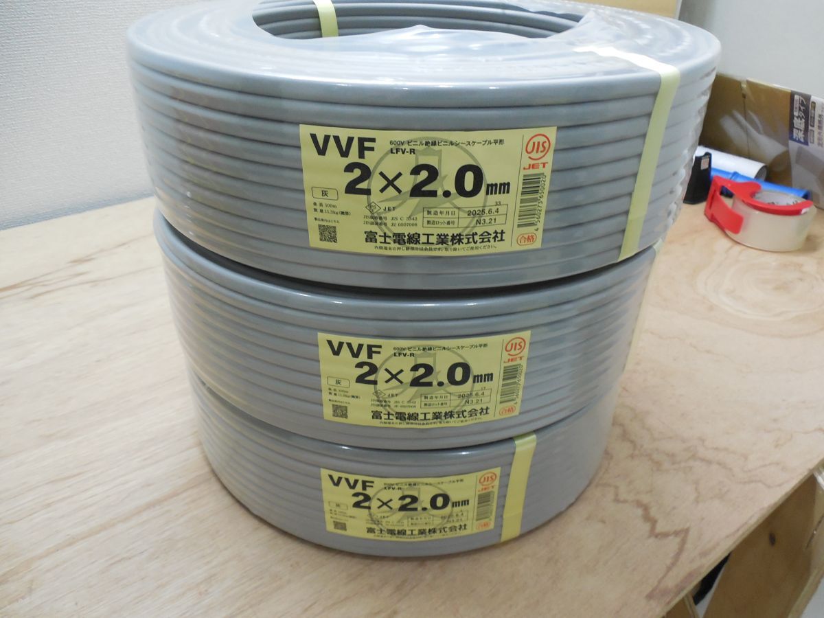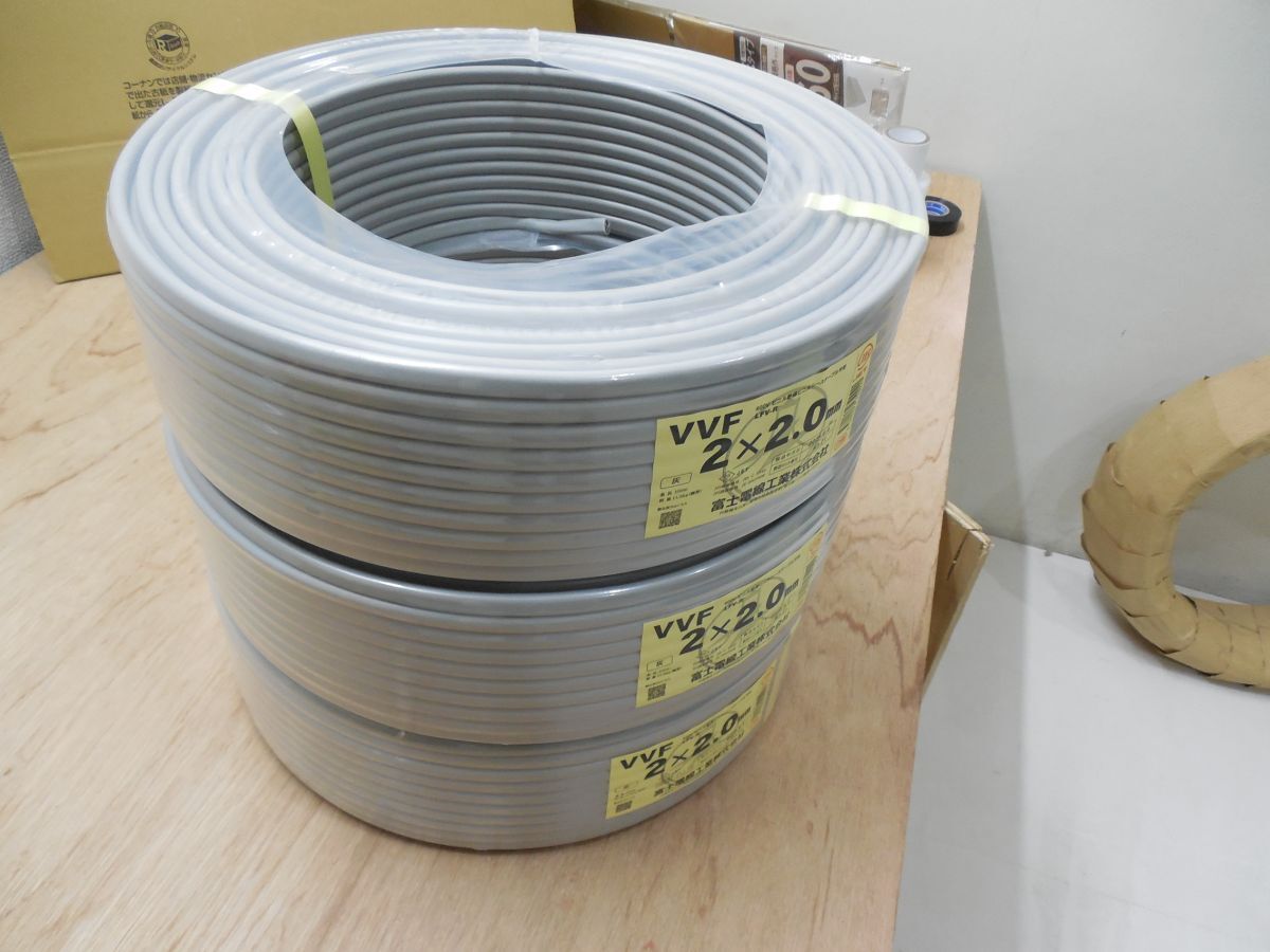 富士電線工業株式会社 VVF 2×2.0mm IET 灰 100m/3本セット 收藏