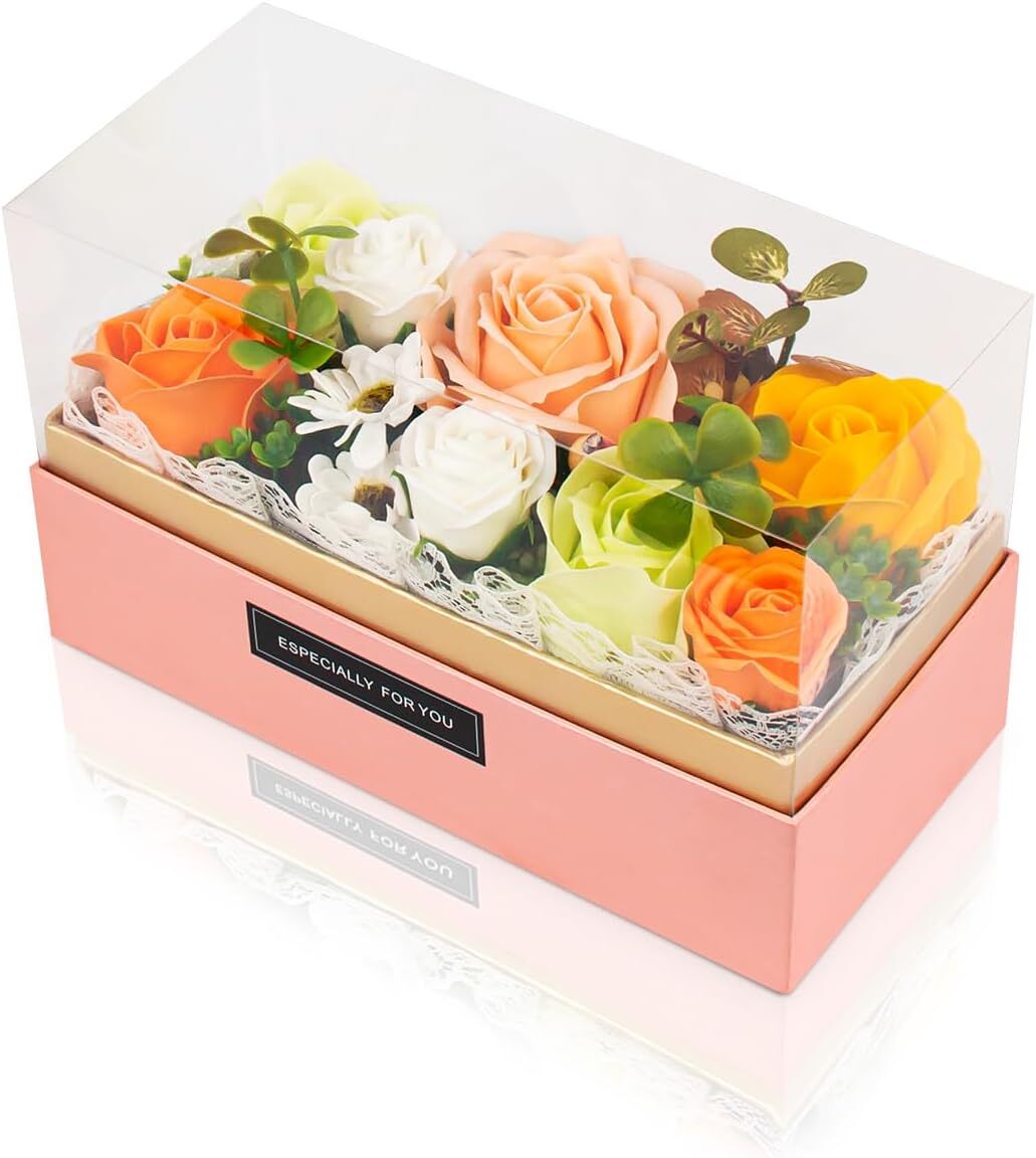 BBICE ソープフラワー ギフト 人気 誕生日プレゼント 手提げ付き 枯れない お花 ギフトクリアボックス メッセージカード付き 女性 收藏