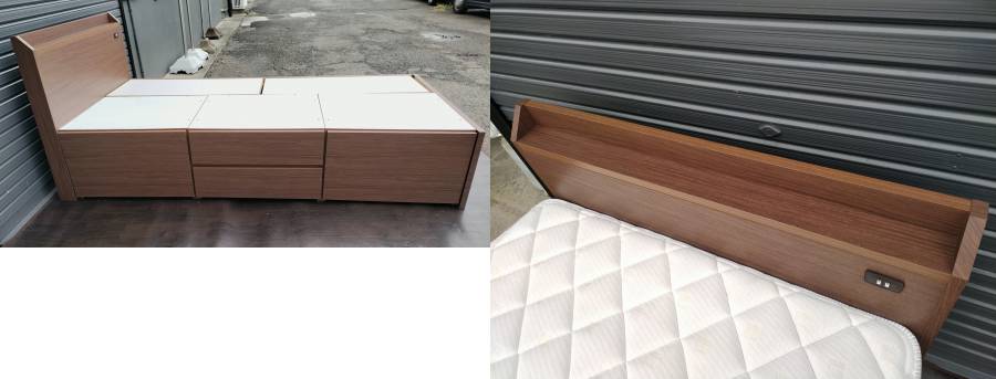 【愛知近郊・配送可】ニトリ ベッド シングル 幅97.5cm×長さ206cm×高さ85 マットレス 引き出し収納 コンセント付 ミドルブラウン 收藏